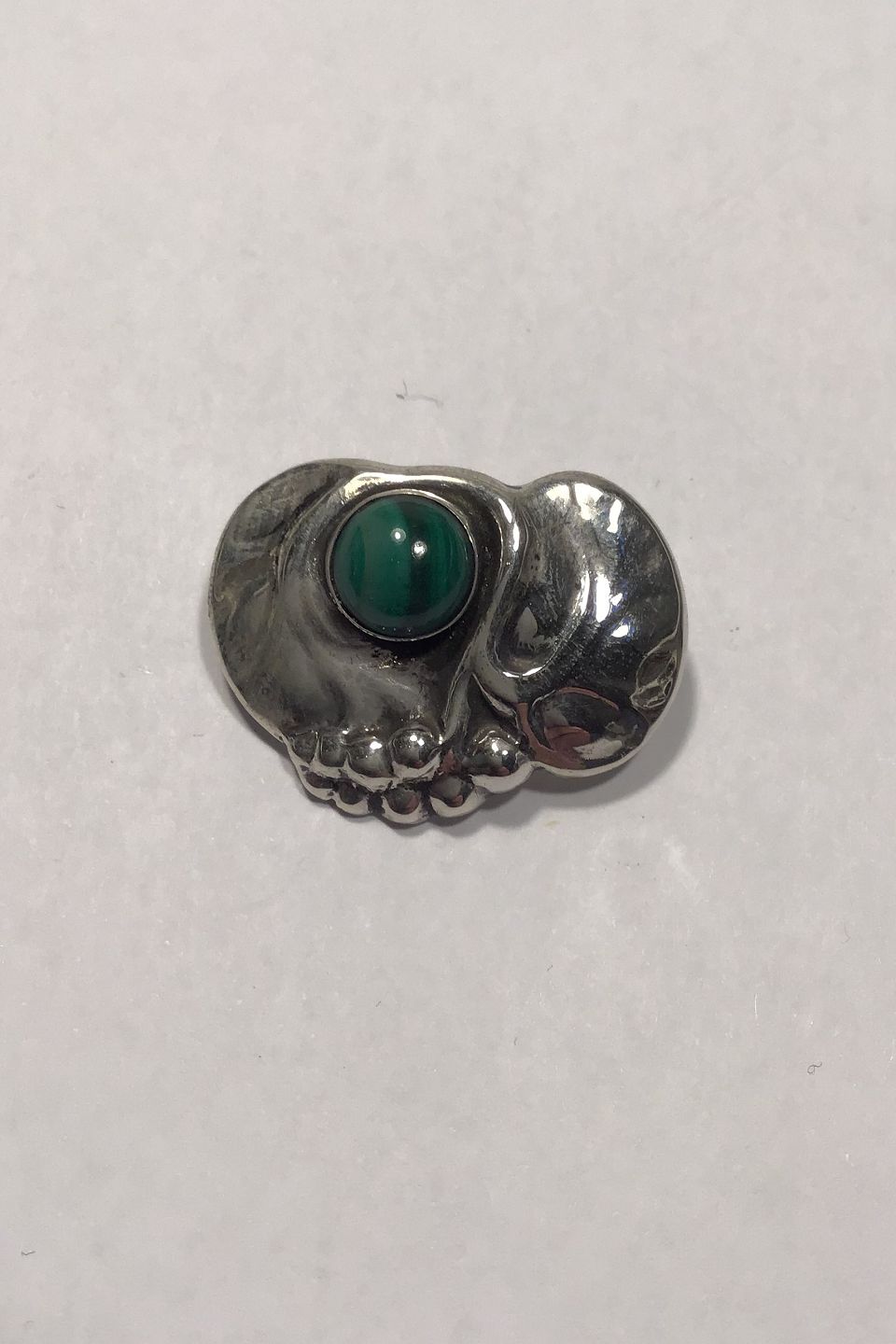 Tidlig Georg Jensen Sølv Broche No 68 Malakit (1909-1914) Måler 2.3 cm x 3.1 cm( 0 29/32 in x 1 7/32 in) Vægt 6.1 gr/0.22 oz