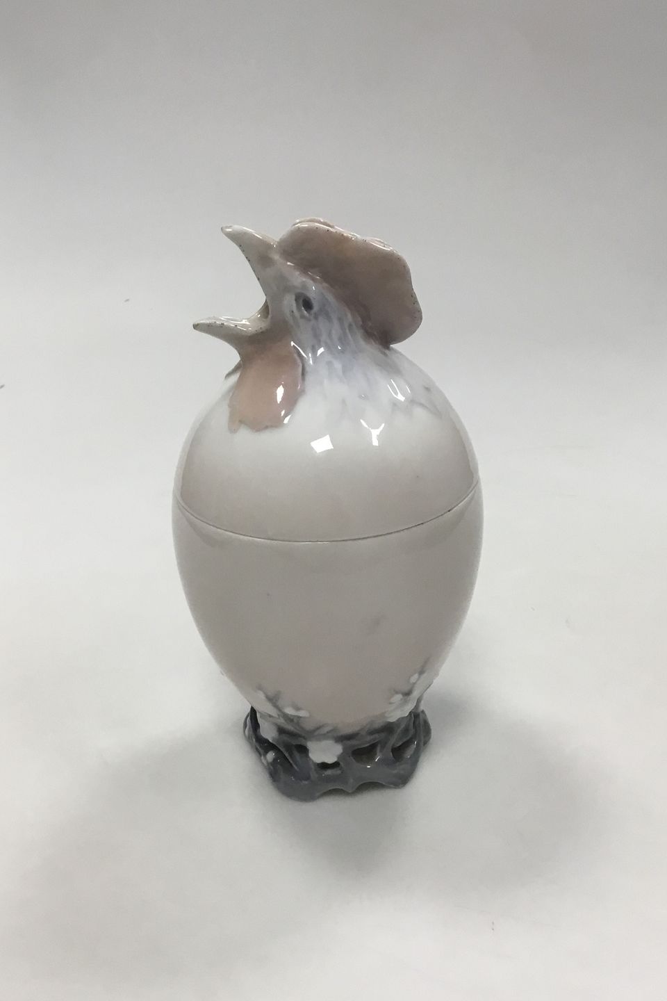 Royal Copenhagen Art Nouveau Bonbonniere Shaped as a Cock/Egg No 159. Measures 19 cm / 7.48 in. Over Part hvis Chip on edge. Underpart with cracks