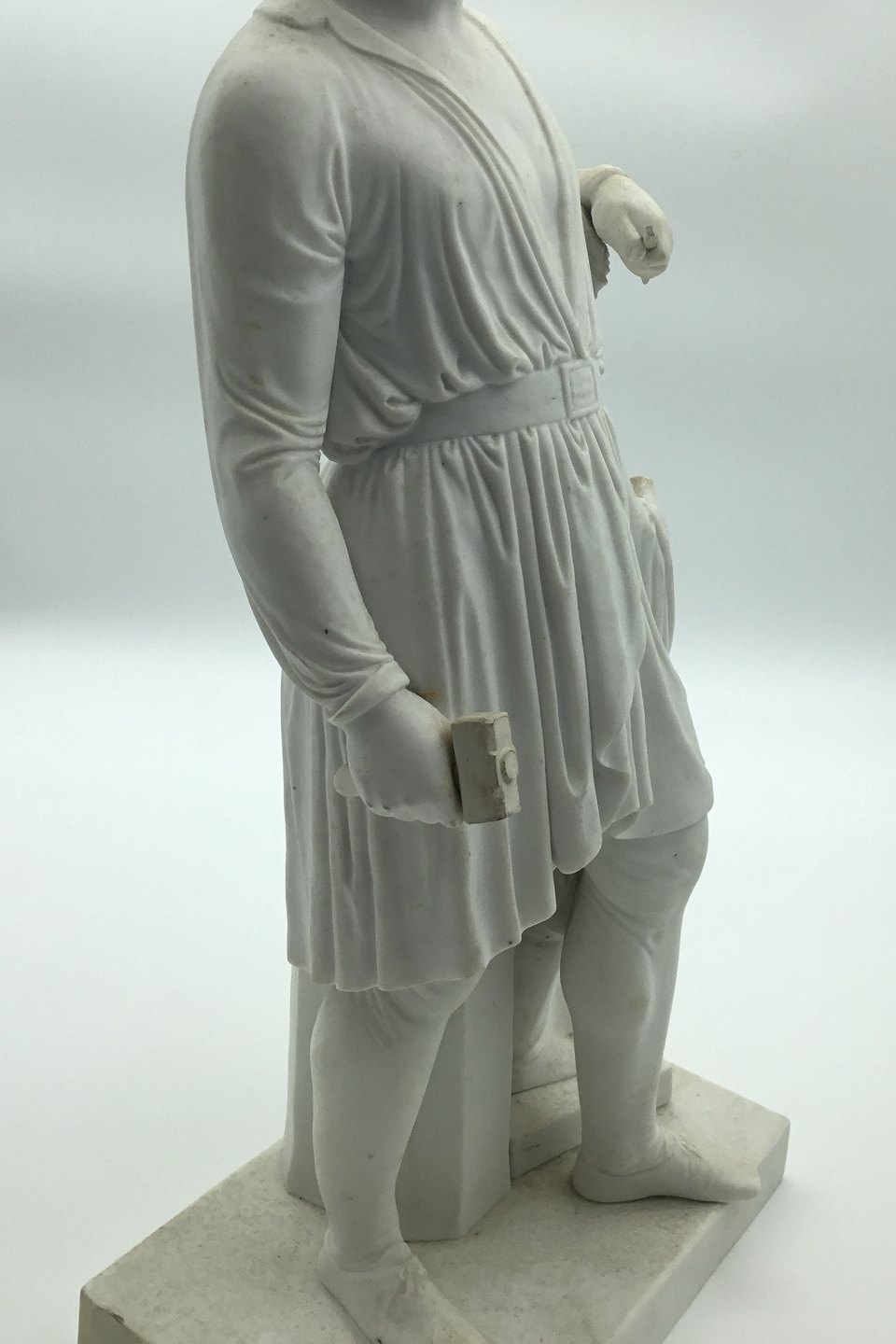 Royal Copenhagen figurine in bisque: Bertel Thorvaldsen with The Hope.