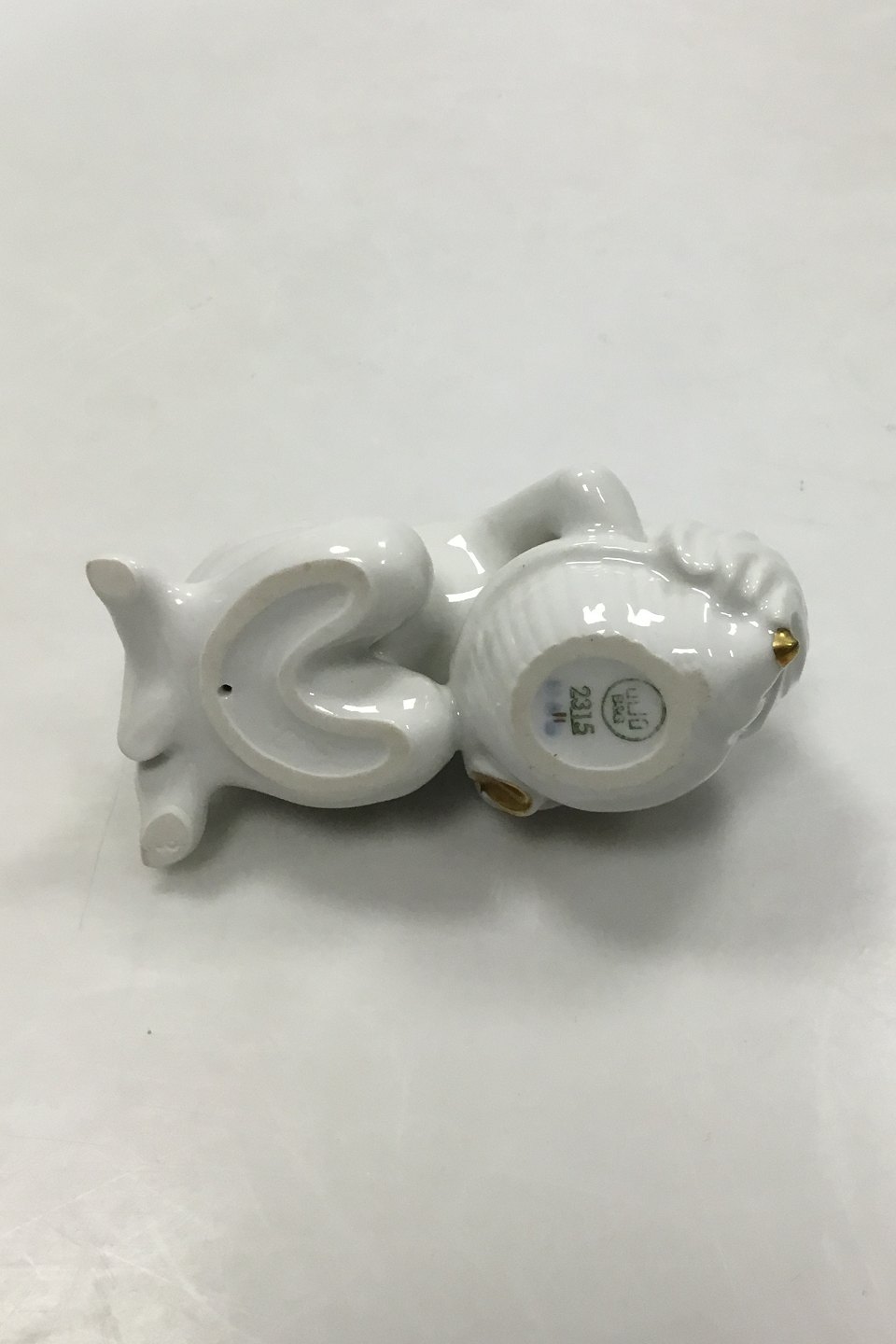 Bing and Grondahl Blanc de Chine Figurine with gold of Child with Seashell No. 2315. Measures 10 cm / 3 15/16 in.