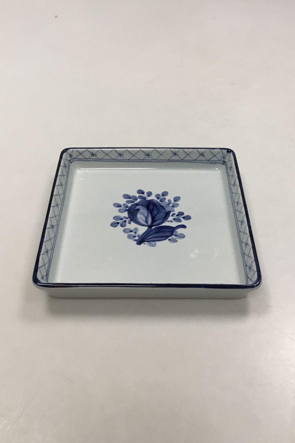 Royal Copenhagen Blue Tranquebar Low Square Bowl No 1791. Measures 17.3 cm x 17.3 cm / 5.39 inch x 5.39 inch