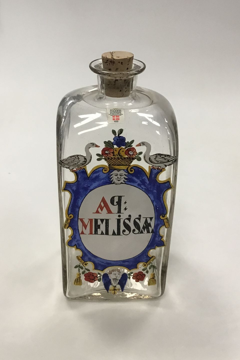 Holmegaard Apotekerflasken, krukke med tekst AP MELISSAE fra 1986.