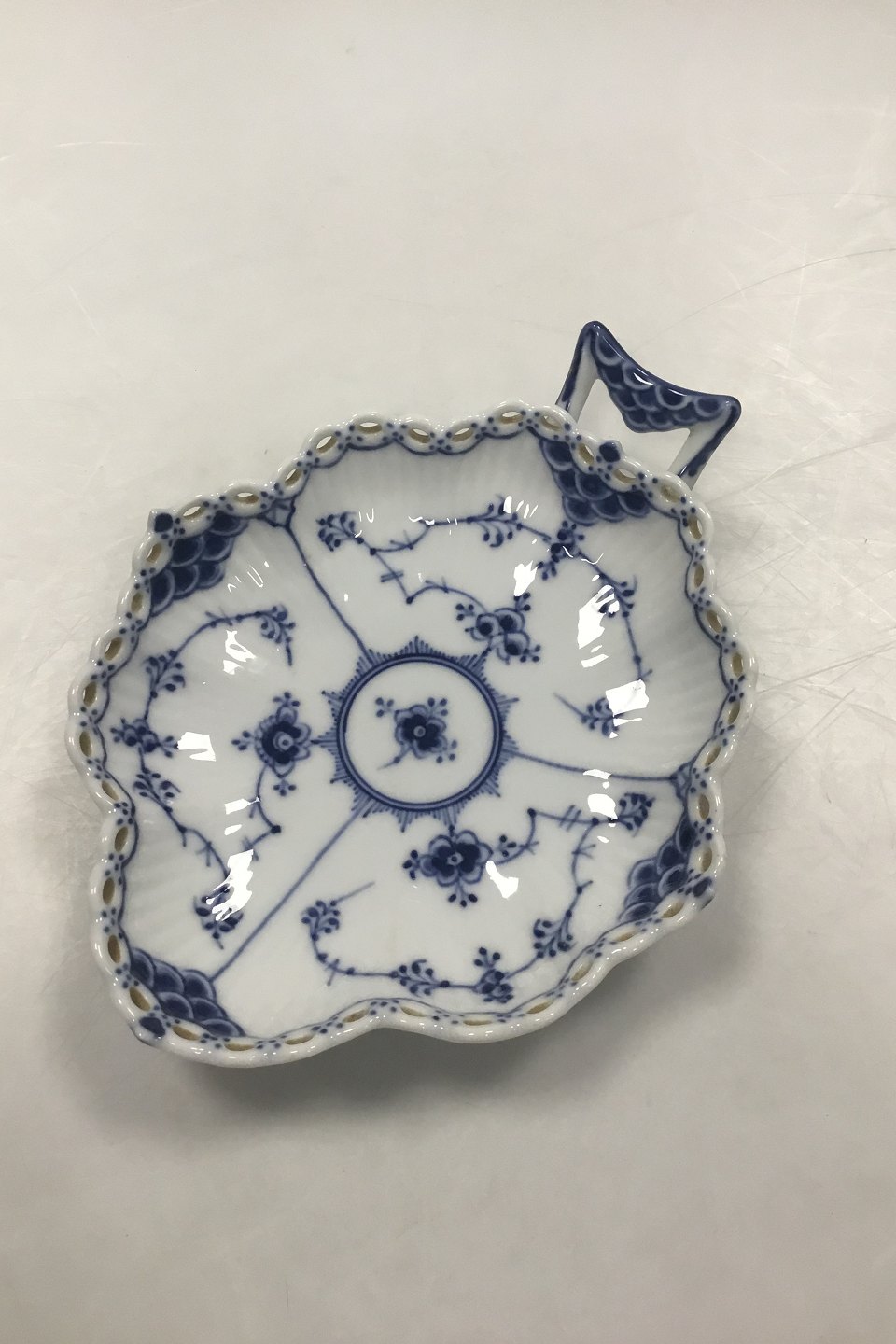 Royal Copenhagen Musselmalet Helblonde Bladformet fad No 1076. 1. sortering. Måler 18,5 cm ( 7 9/32 in. ). Er mærket 1016, meget 1 tallet er et dårligt 7 tal. Da det skal være 1076.