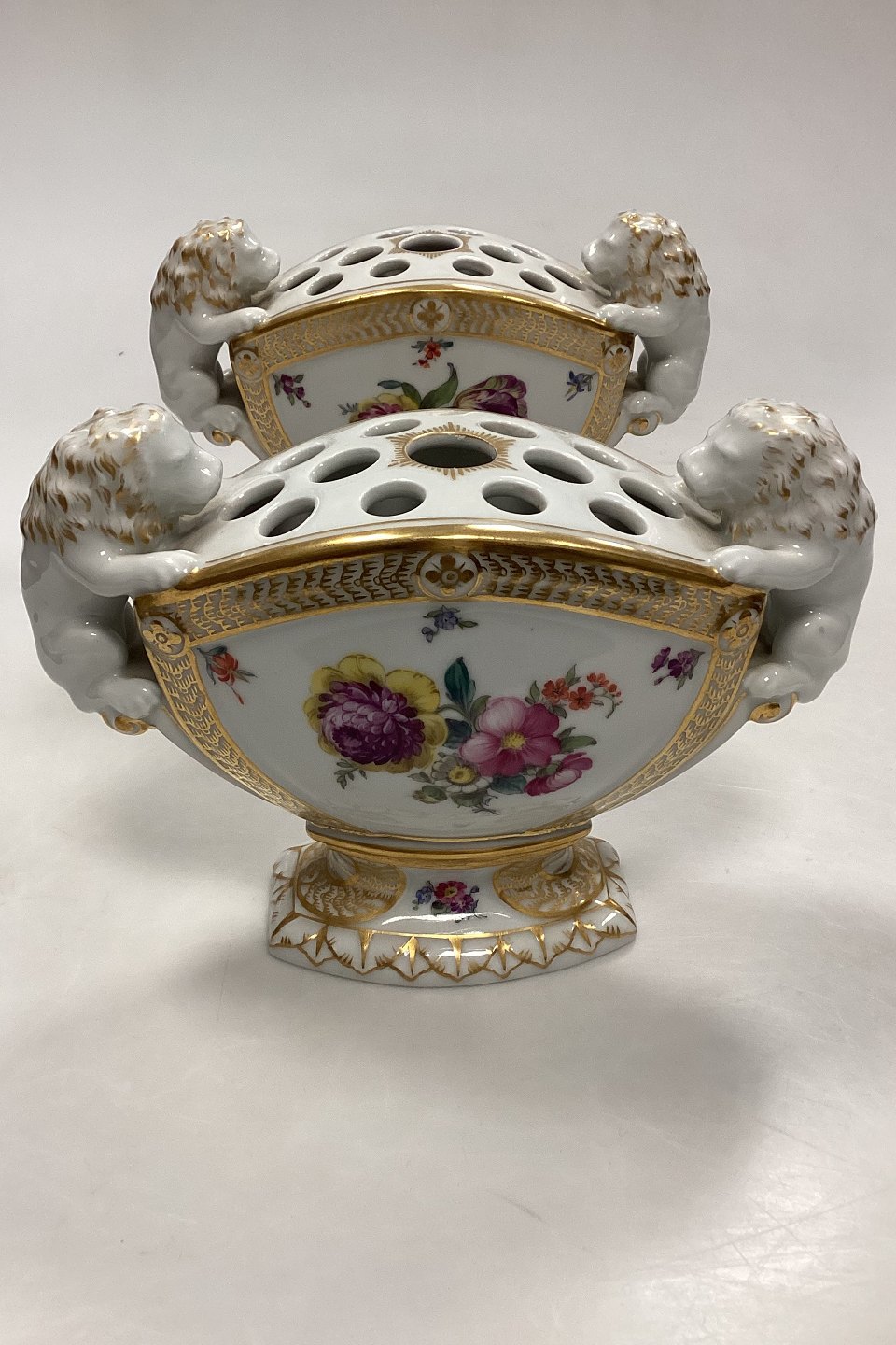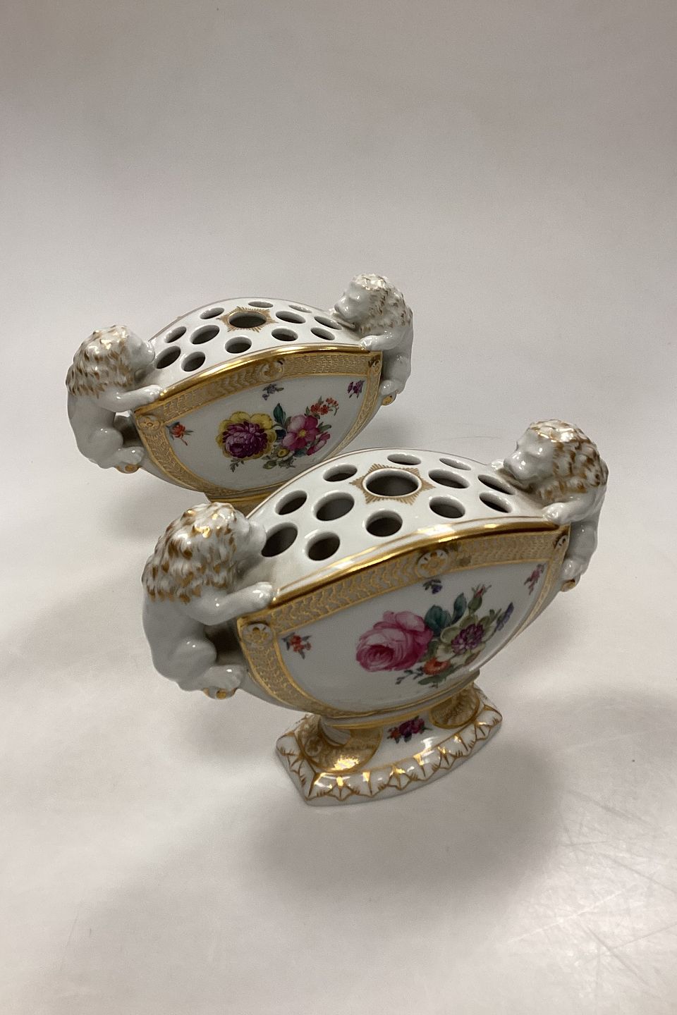 Pair of Royal Copenhagen Full Saxon Flower bouquetièrs / Vases with lionheads No. 1571