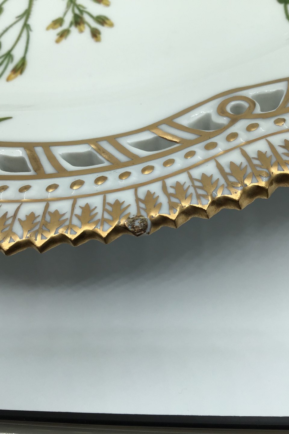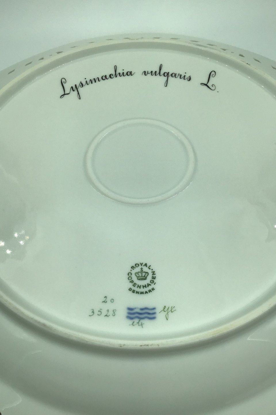 Royal Copenhagen Flora Danica Large Round Tray No 20/3528. Latin name: "Lysimachia vulgaris L" Measures Diam 33,5 cm (13.18 inch) (Chipped)