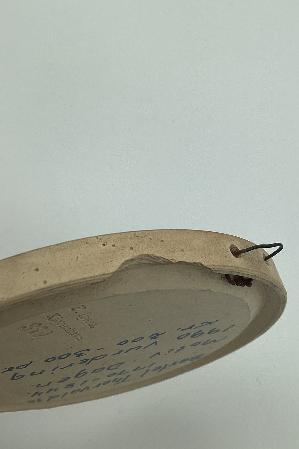 Small Peter Ipsen Terracotta Platter "The Day" and "The Night" by Bertel Thorvaldsen. Embossed motifs on background in burgundy. "Dagen" plate with shards (see photo). Description with ink on the back and assessment in 1990. Measures 9cm (3.54 inches).
