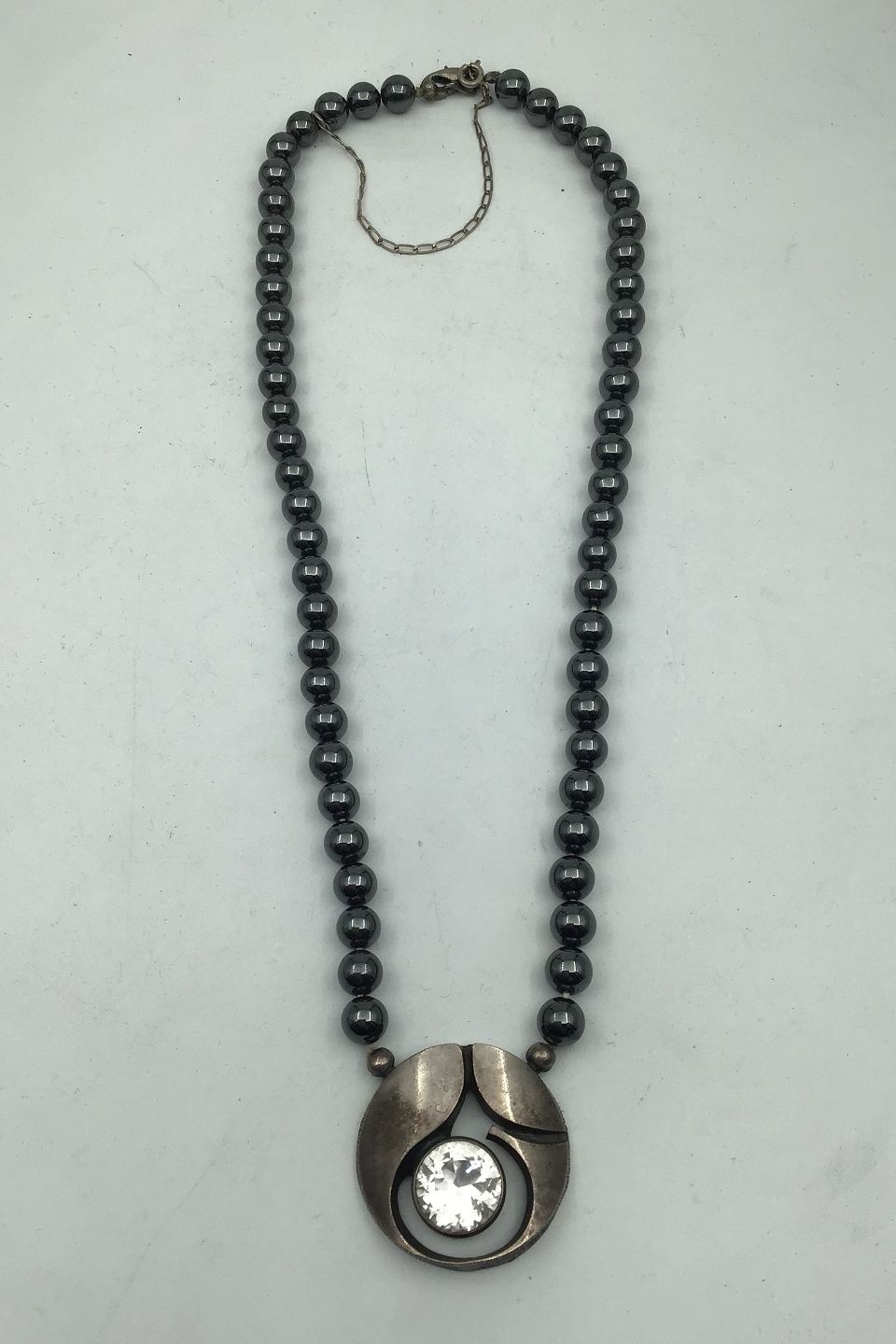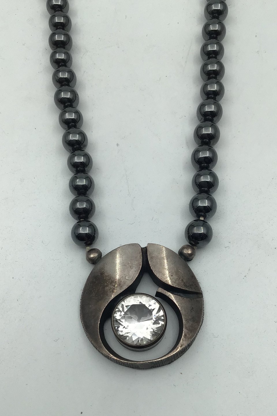 Sten and Laine, Finland, Hematite Necklace, Sterling Silver Pendant with Rock Crystal Measures 50 cm (19.68 inch) Combined weight 91.1 gr / 3.21 oz