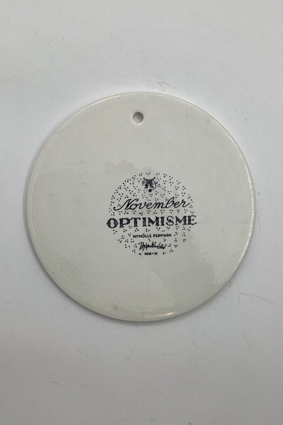 Månedsplatte i fajance for november - OPTIMISME. Designet af Bjørn Wiinblad for Nymølle. I perfekt stand. Fabriksmærket på bagsiden. Mål: 15 cm (5.90 inch)