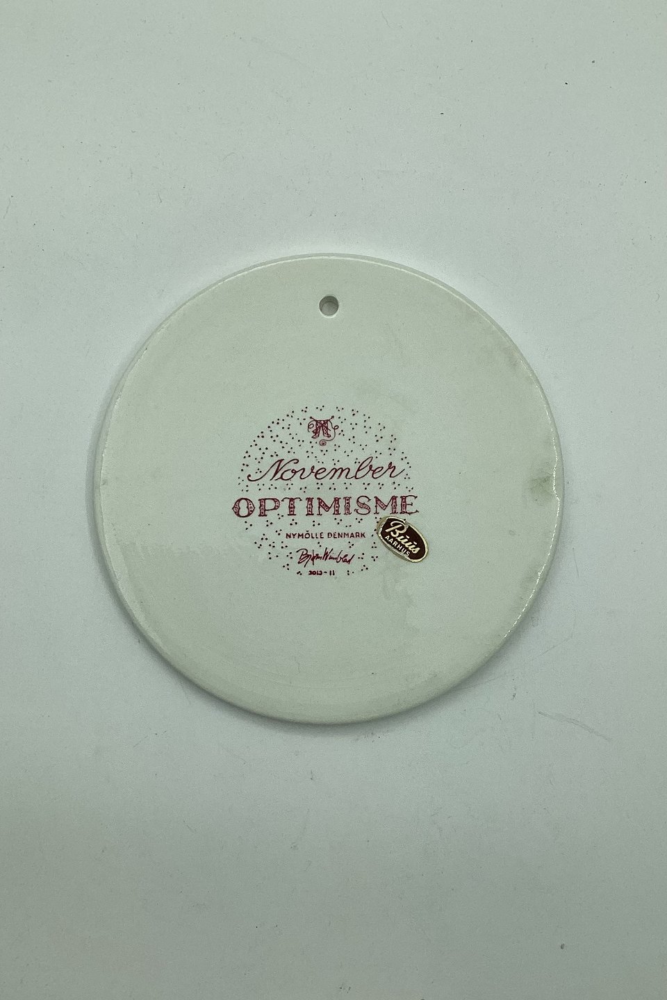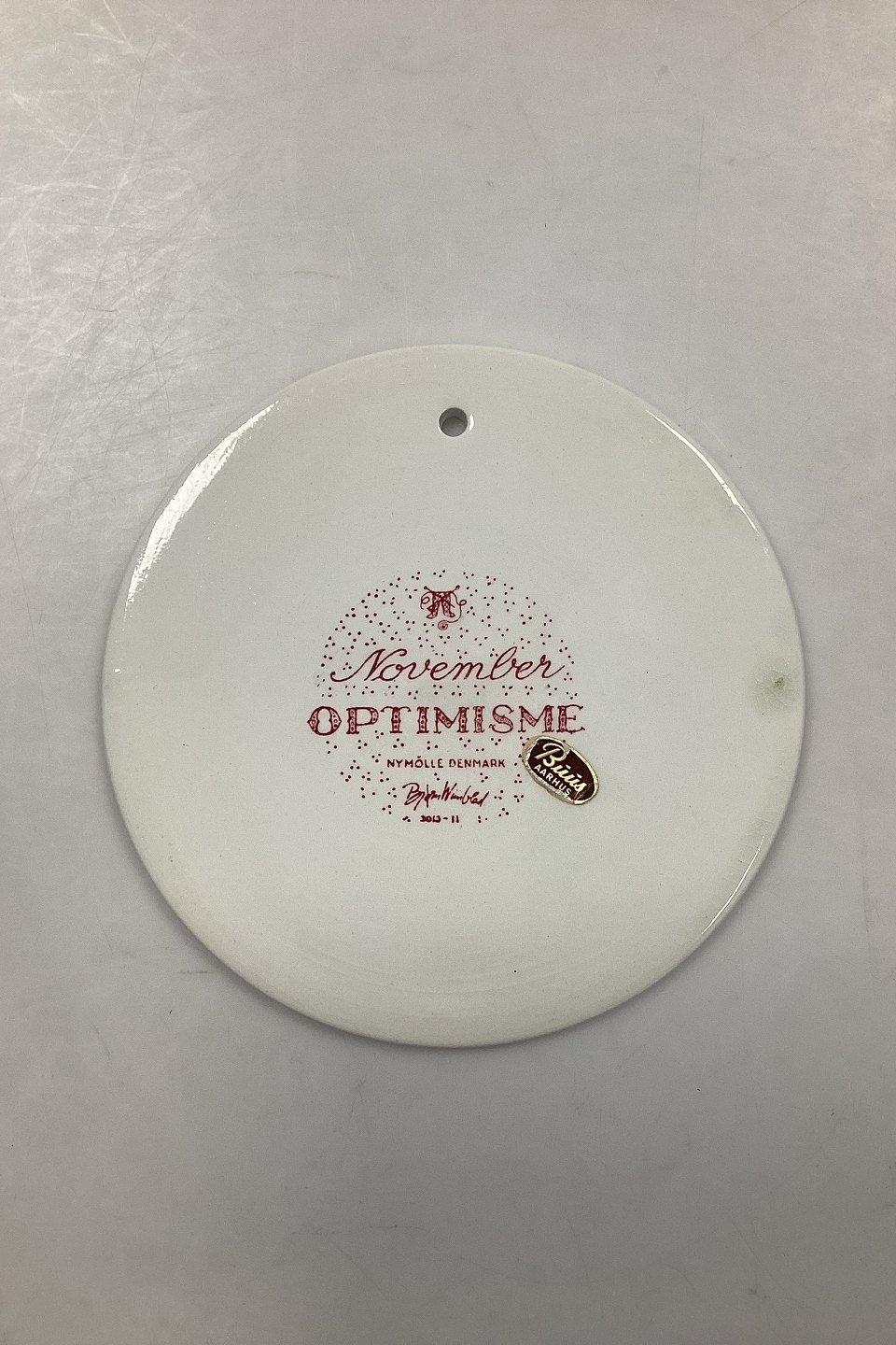 Rød månedsplatte i fajance for november - OPTIMISME. Designet af Bjørn Wiinblad for Nymølle. I god stand. Fabriksmærket på bagsiden. Mål: 15 cm (5.90 inch.)