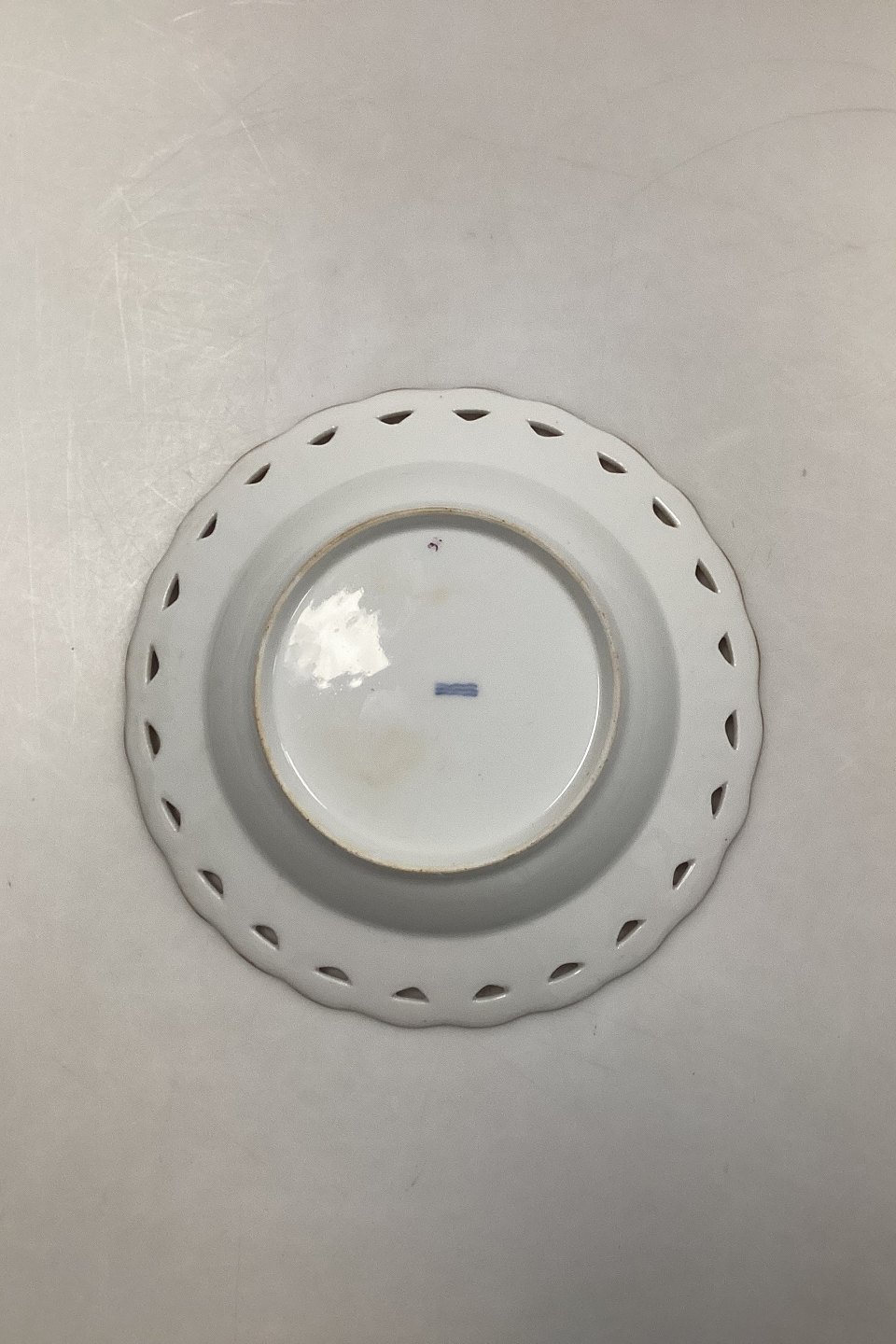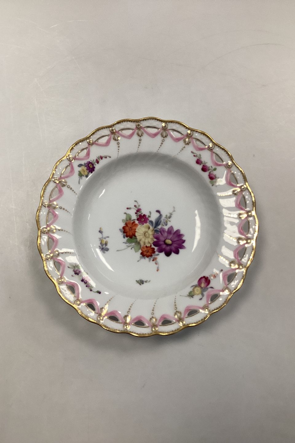 Royal Copenhagen Fuld Saksisk Blomst Dyb Tallerken med Gennembrudt Blondekant 1860-1890. 22.5 cm dia. I fin hel stand, med minimalt slid på guldet.