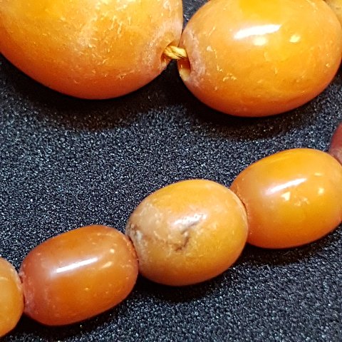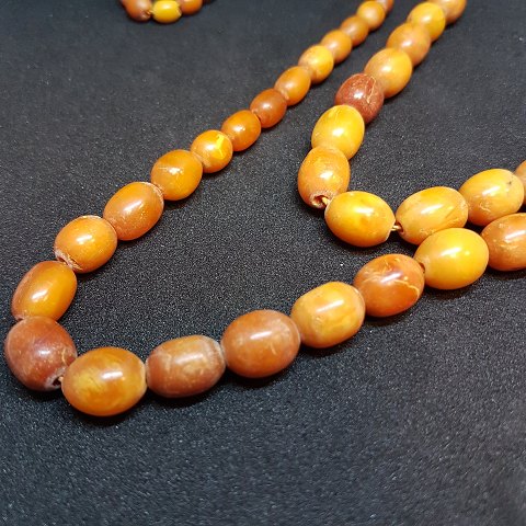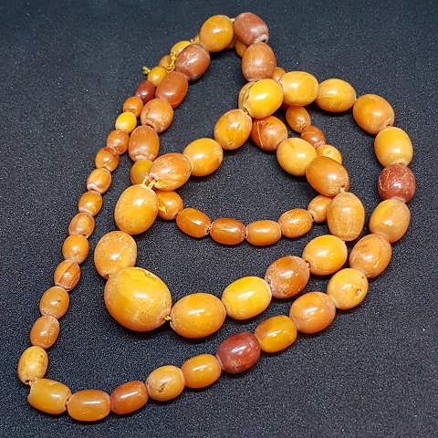 Antique Butterscotch baltic sea amber necklace with olive shaped beads. Length 72 cm. Weight 35.5 grams