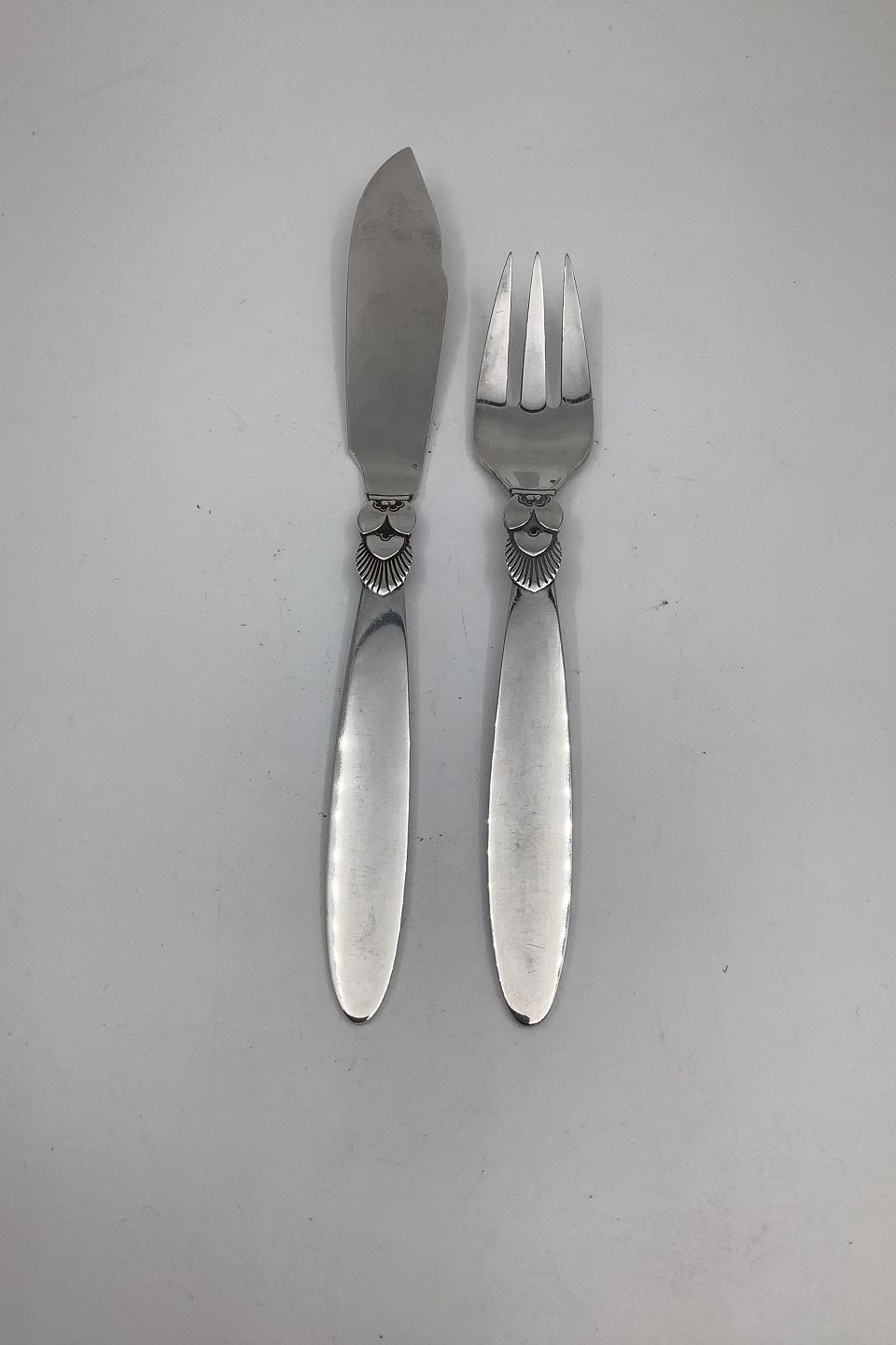 Vintage Sæt på 10 Georg Jensen Sterling Sølv Kaktus Fiskekniv og Gafler No 61 og 62