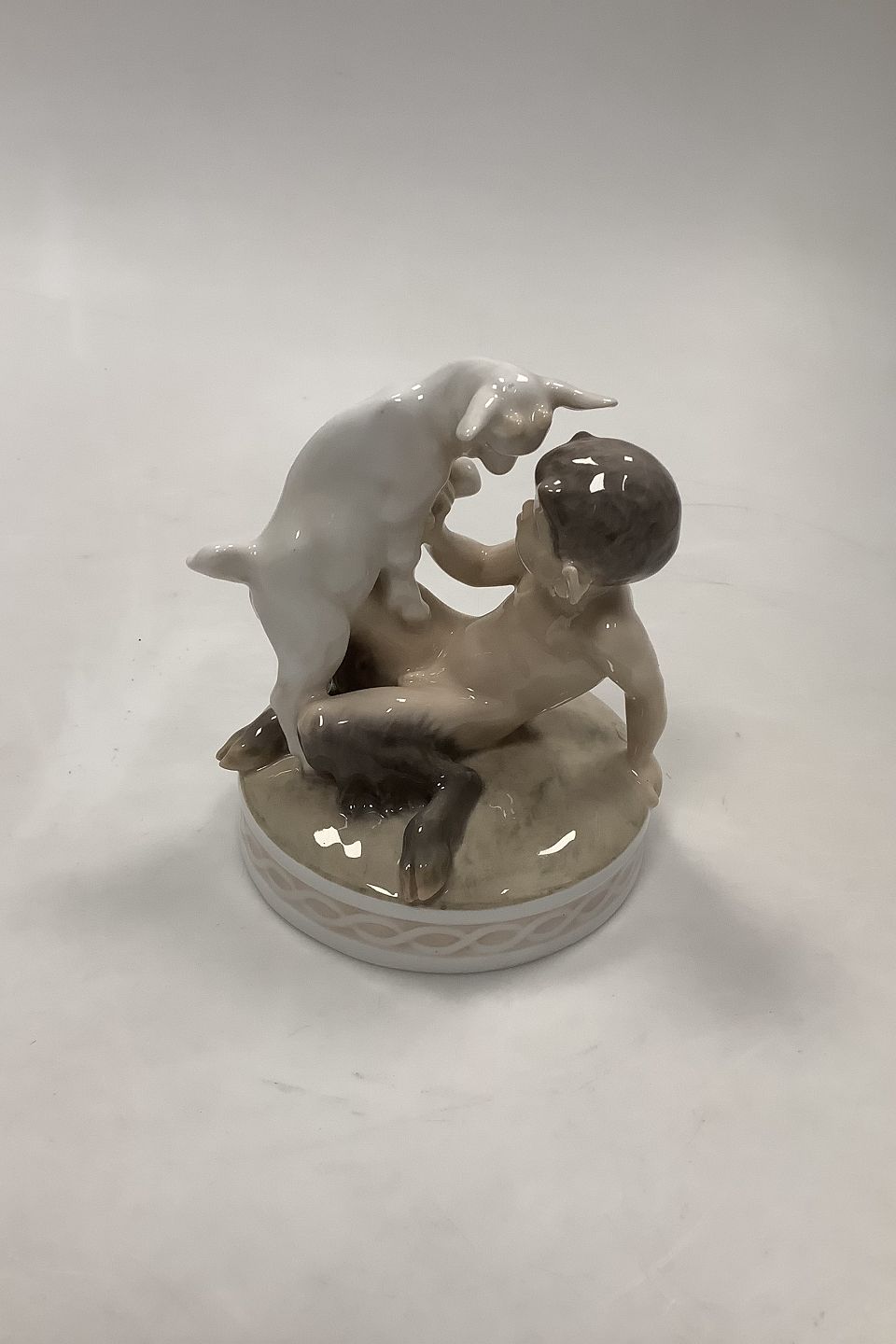 Royal Copenhagen Figur Faun med Gedekid No. 498. Designet af Chr. Thomsen i 1906.