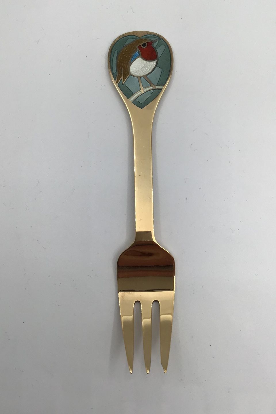 Anton Michelsen Julekagegaffel 1981 Forgyldt Sterling Sølv med emalje