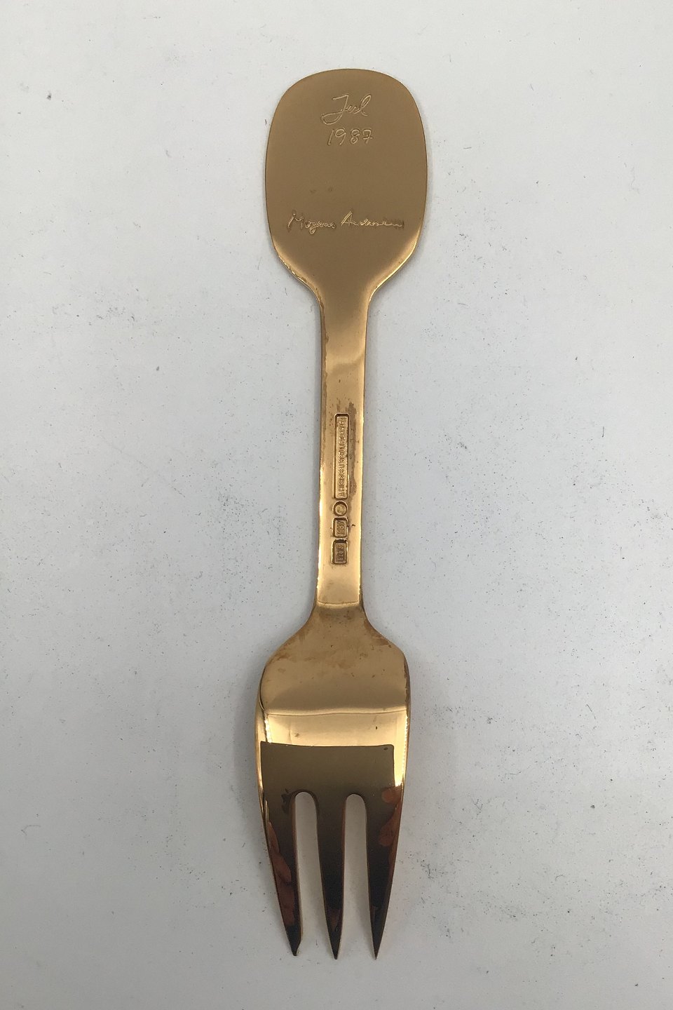 Anton Michelsen Christmas Pastry Fork 1987 Gilded Sterling Silver with enamel.