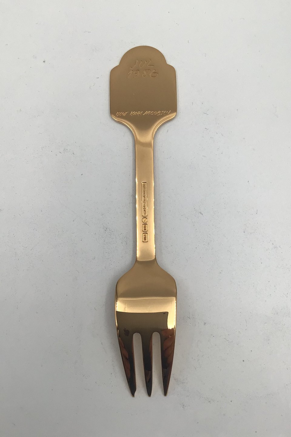 Anton Michelsen Julekagegaffel 1986 Forgyldt Sterling Sølv med emalje