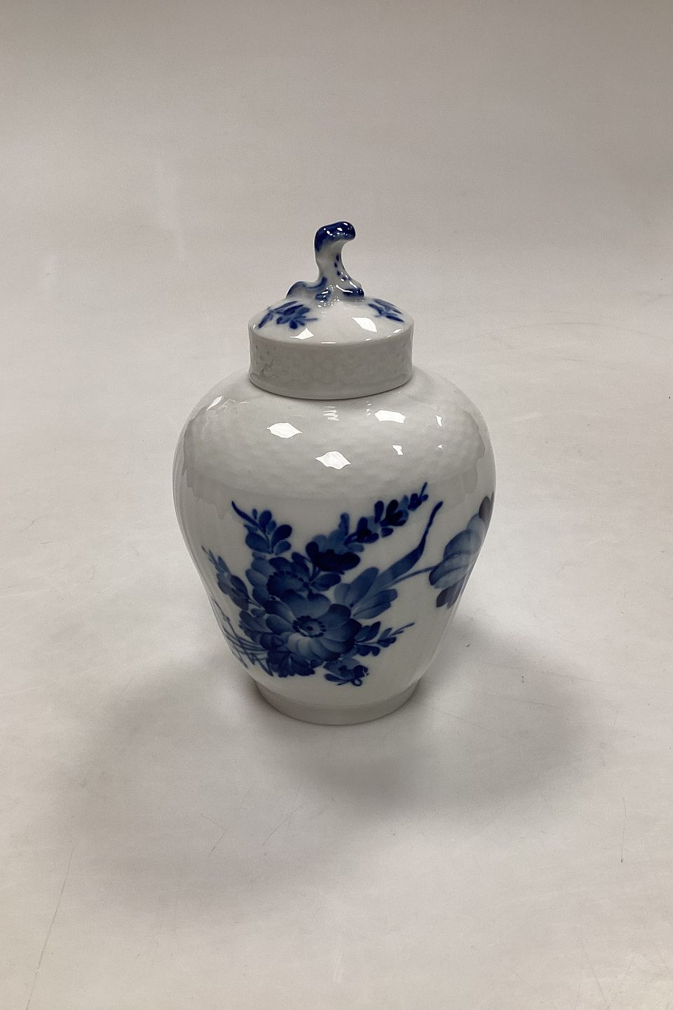 Royal Copenhagen Blue Flower Curved Tea Canister with Lid No. 1684. Measures 13 cm / 5.1 in.