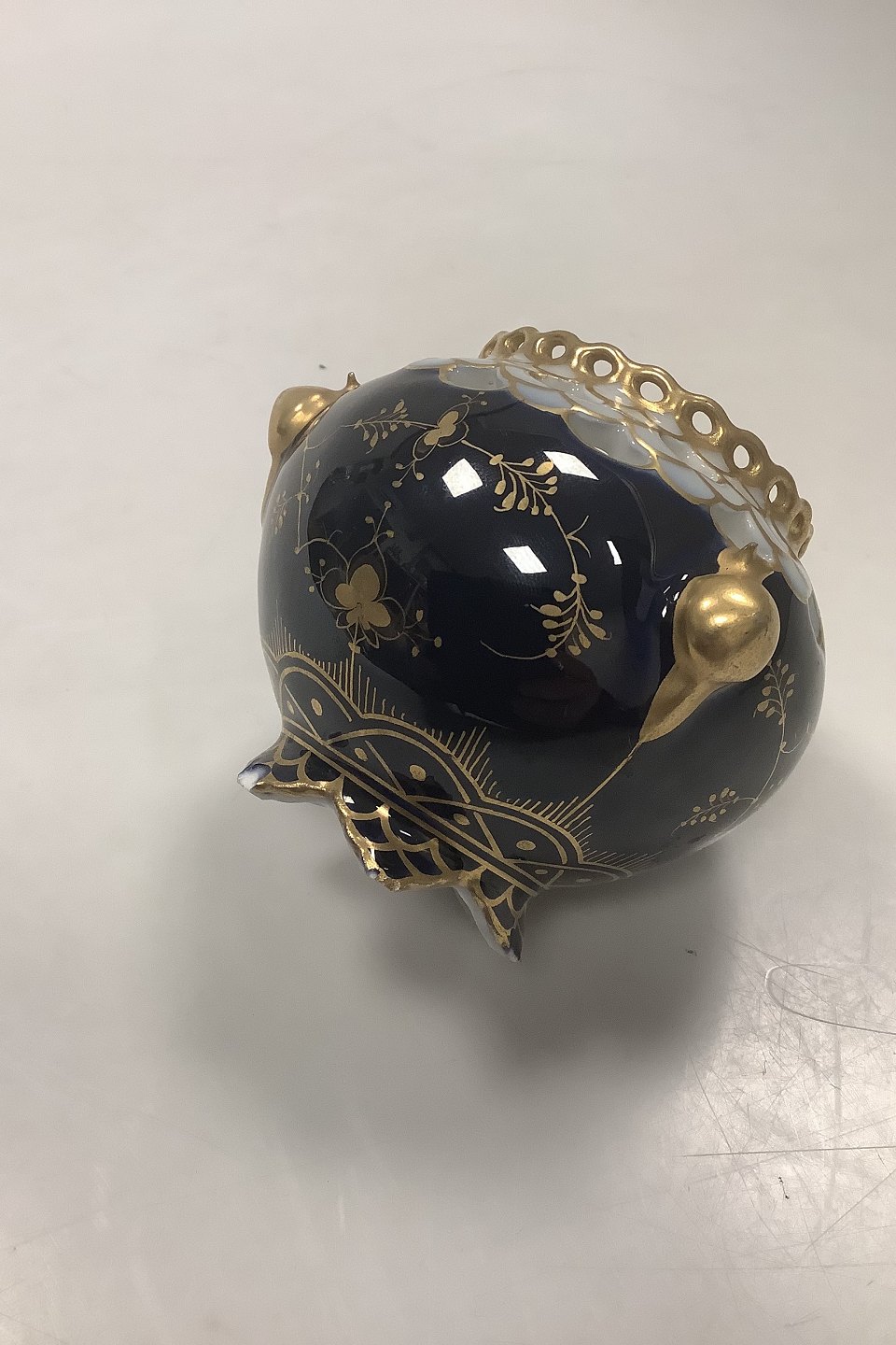 Royal Copenhagen Blue Fluted Full Lace Little Vase No 1043 in Rare Dark Blue and Gold.