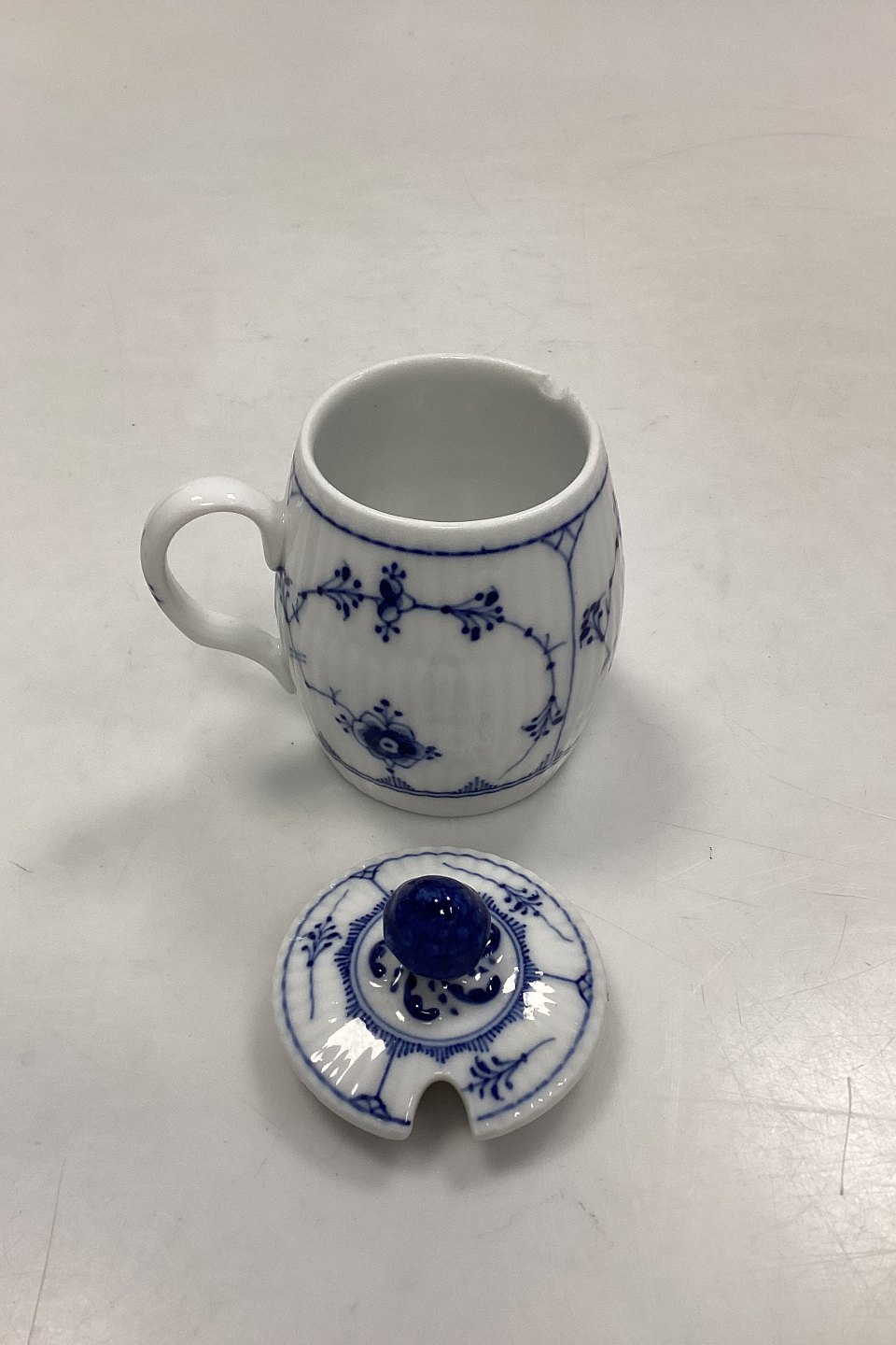 Royal Copenhagen Musselmalet Riflet Sennepskrukke med låg No. 137. Lille skår i koppen øverst på kanten.