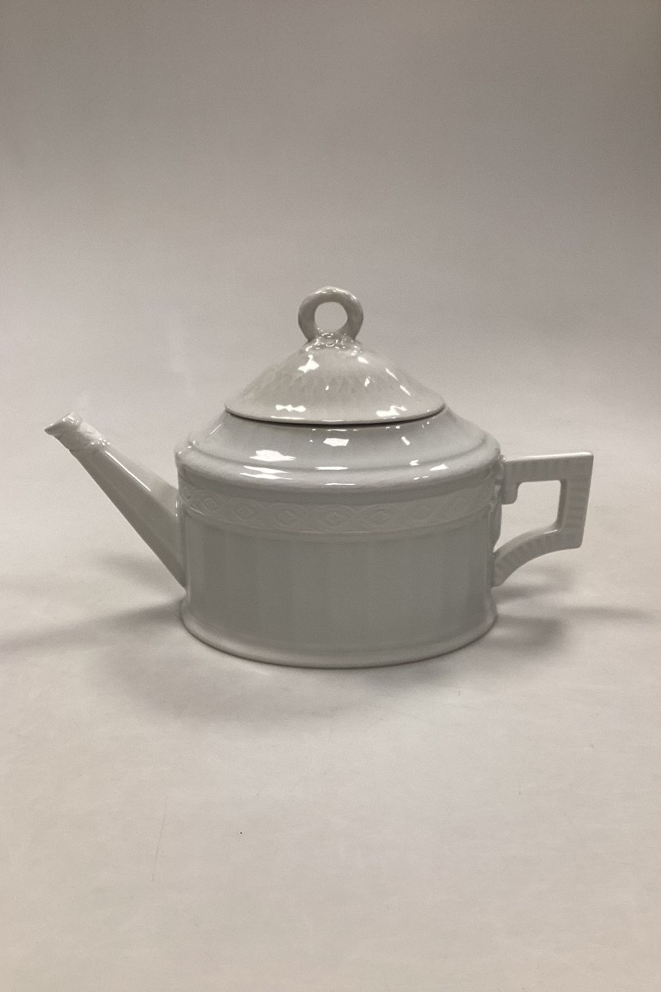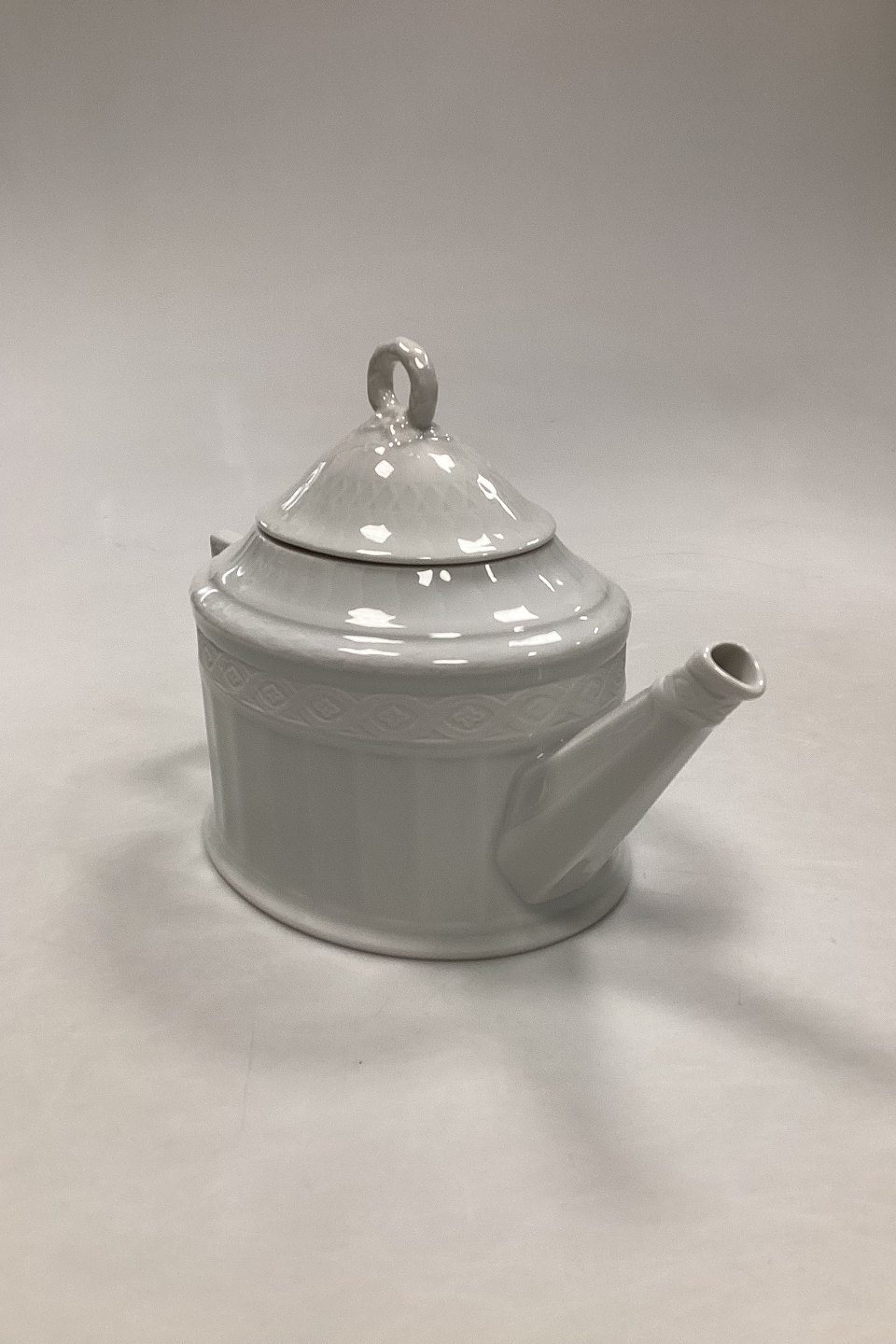 Royal Copenhagen Hvid Vifte Thekande No. 11566. Måler 17 cm x 27 cm / 6.69 in. x 10.62 in. Indhold: 90 cl. I perfekt stand.