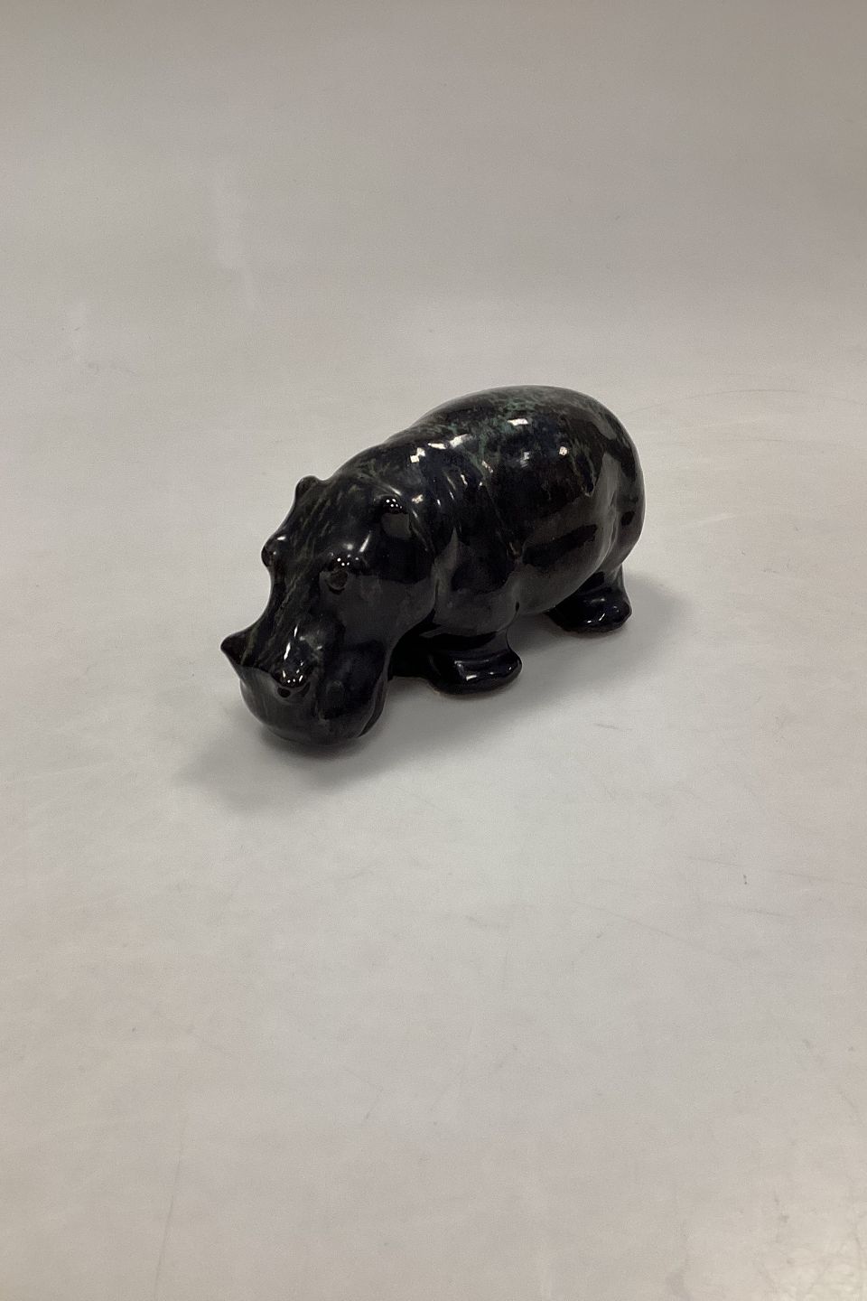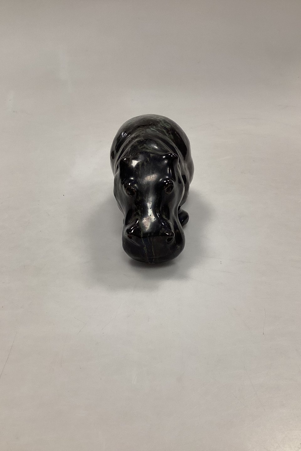 Flodhest i Stentøj af Poul Kyhn. Glasering i mørkebrun og grøn.