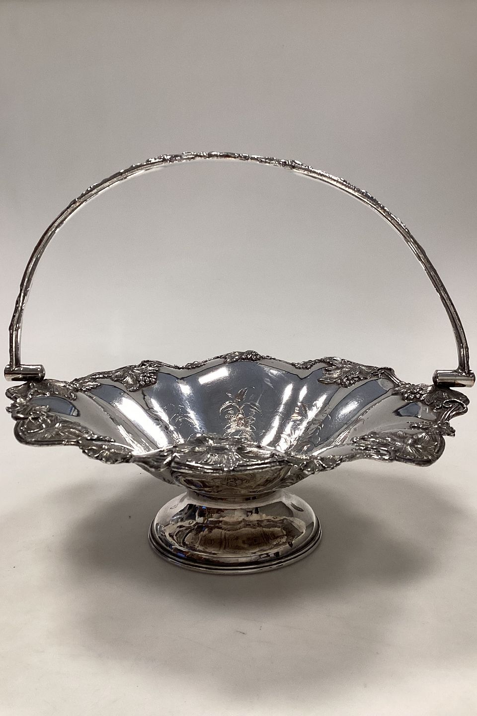 Flot Europæisk Sølvplet kurv med hank med blomster motiv