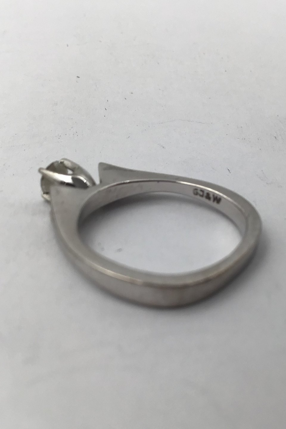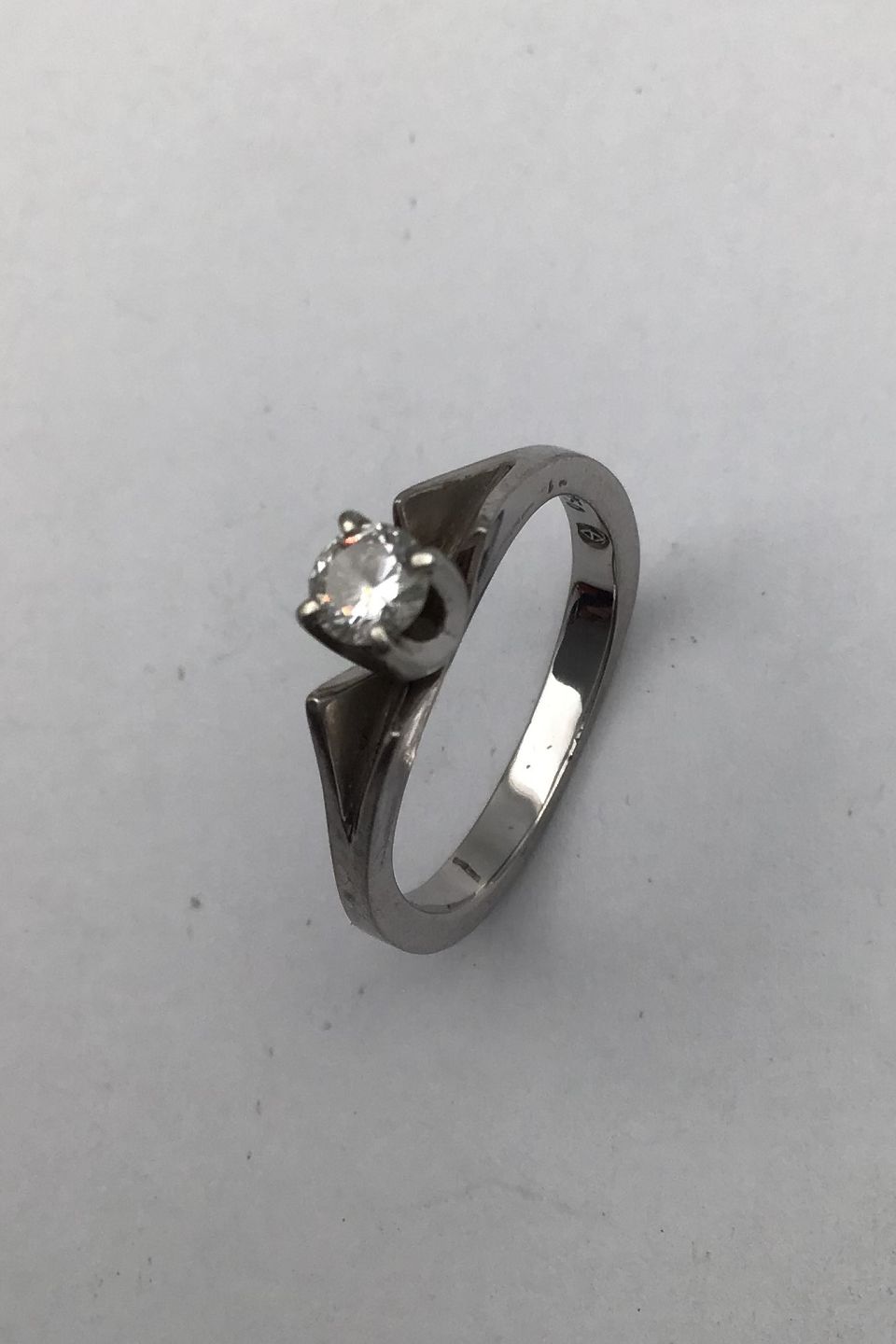 Georg Jensen and Wendel 18K White gold Solitaire Ring with Diamond Ring Size 49 (US 4 3/4) Weight 3.7 gr (0.13 oz)