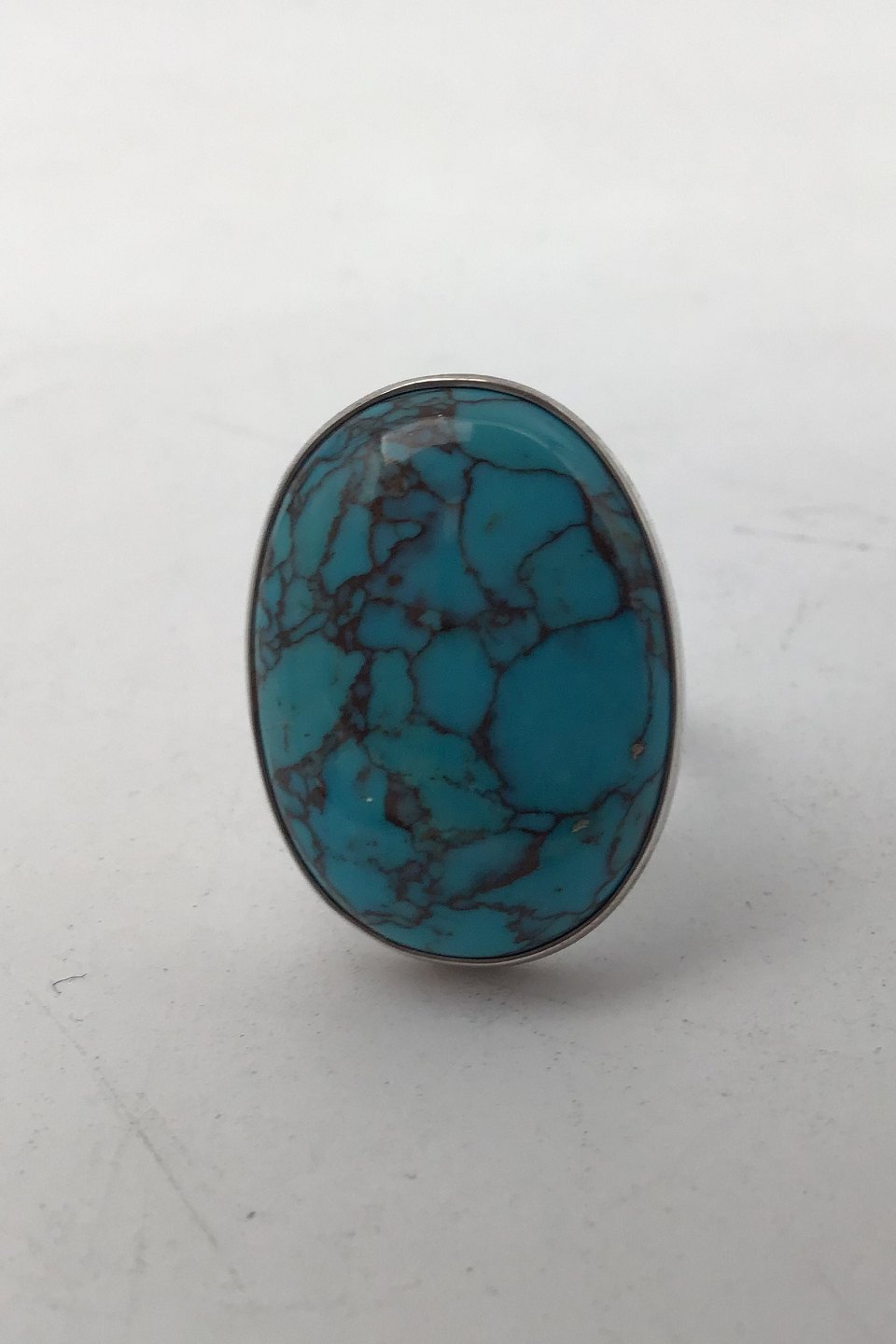 Niels Erik From Sterling Sølv Ring med Turkis Ring Str. 54 (US 6 3/4) Vægt 8.5 gr (0.3 oz)