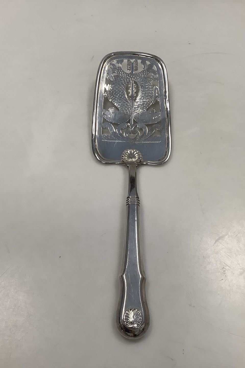 Danish Silver Large Fish Server in Mussel pattern from Lamotte in 1895