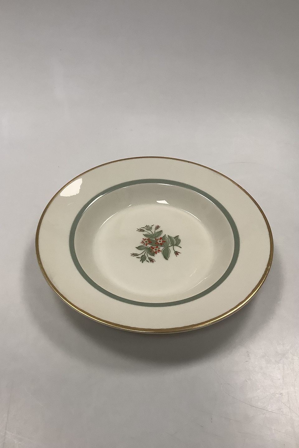 Royal Copenhagen Fensmark Deep Plate No 9587. Measures 25 cm (9 27/32 in). Slight wear on gold edge.