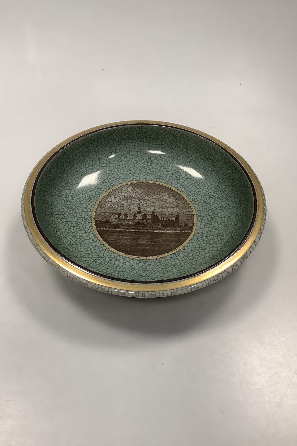 Royal Copenhagen Krakele in Green with Motif of Kronborg for Danish Cement Central