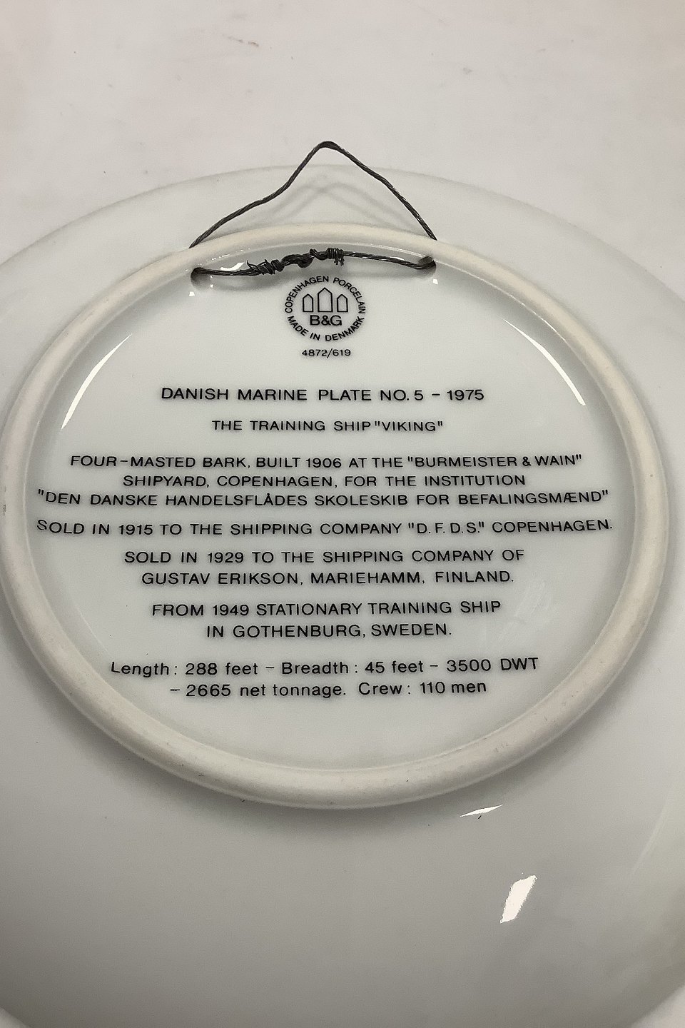 Bing and Grondahl Ship Plate from 1975