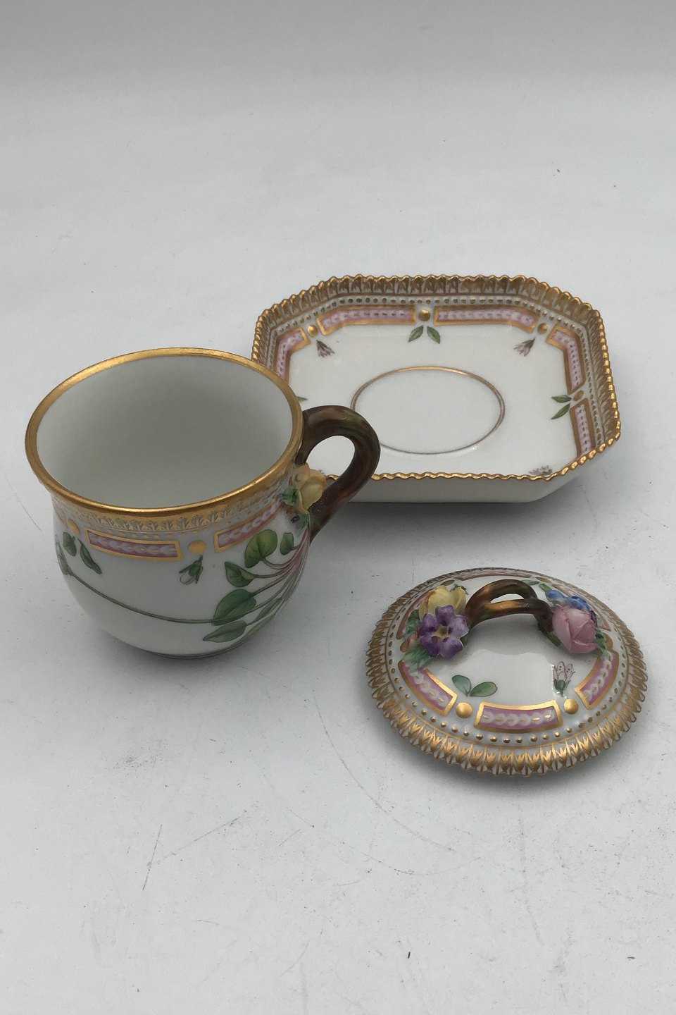 Royal Copenhagen Flora Danica Cremekop No 20/3514 Latinsk Navn Parnassia kotzebuei Cham & Schldl. Måler 8.5 cm /3.34 inch og holder 10 cl (3 1/4 oz)