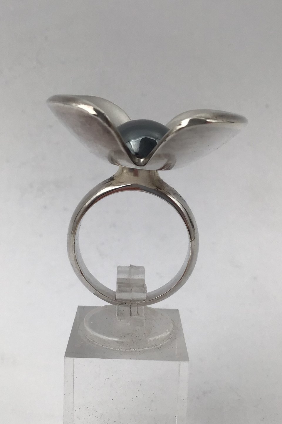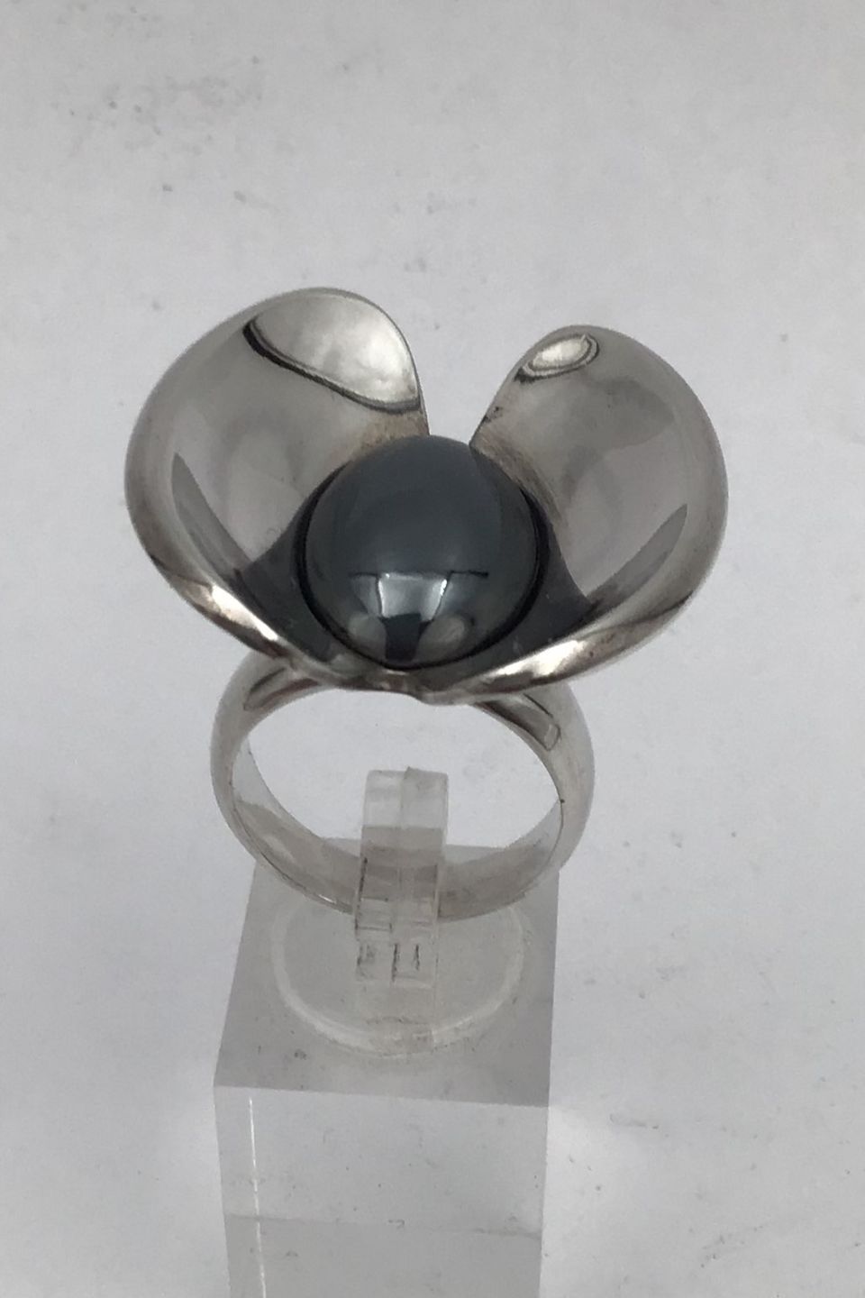 Georg Jensen Sterling Silver Ring No. 206 Hematite Ring Size. 59 (US 8 3/4) Weight 28.7 gr (1.01 oz) Designed by Nanna Ditzel in 1972