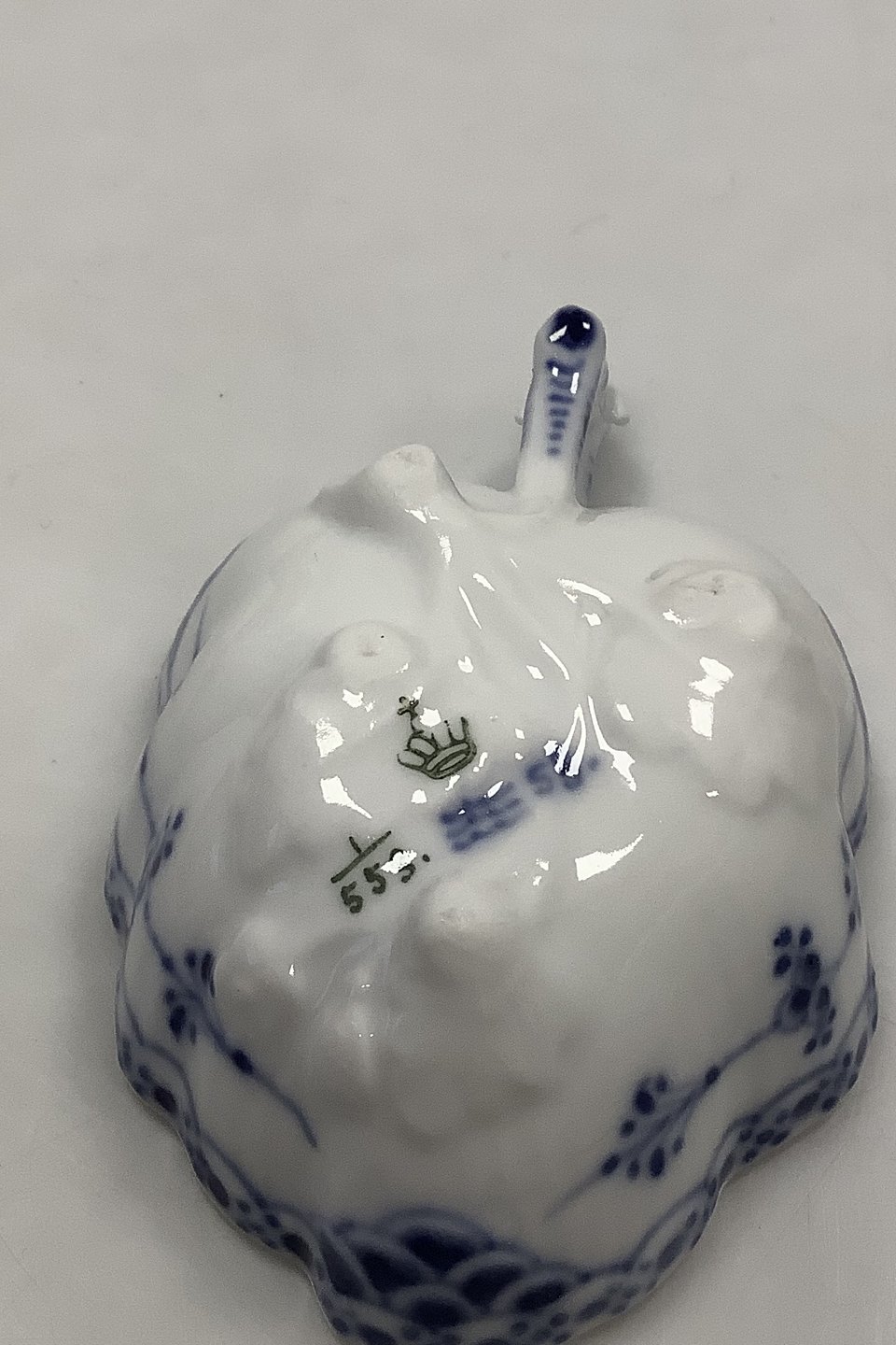 Royal Copenhagen Blue Fluted Half Lace Small Leaf-shaped dish No 553. Måler 10 cm / 3 15/16 in. Handle broken