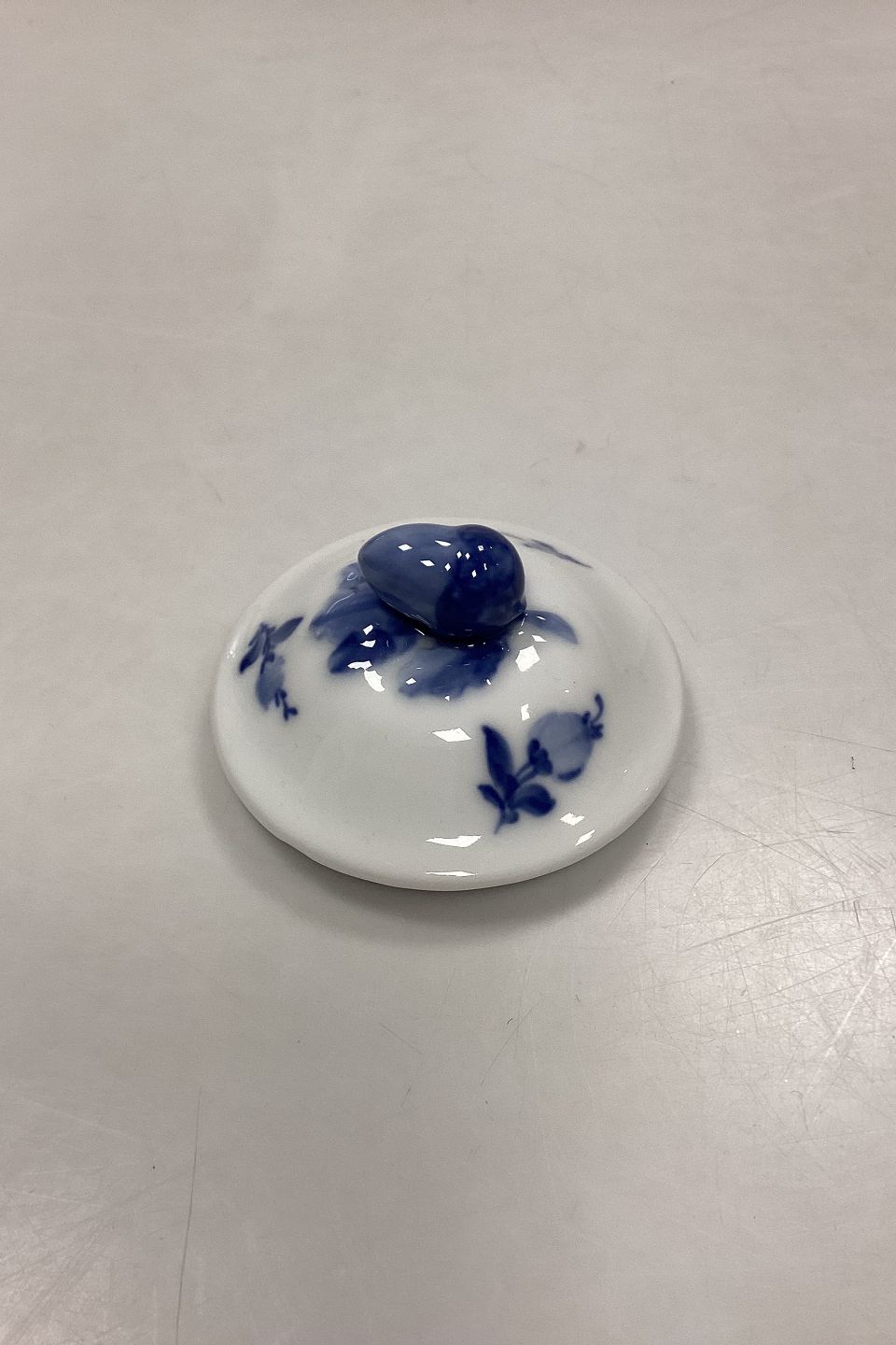 Royal Copenhagen Blå Blomst Låg til Sukkerskål No. 8708. Lille glasurfejl på kanten. Måler 9,5 cm / 3.75 in.