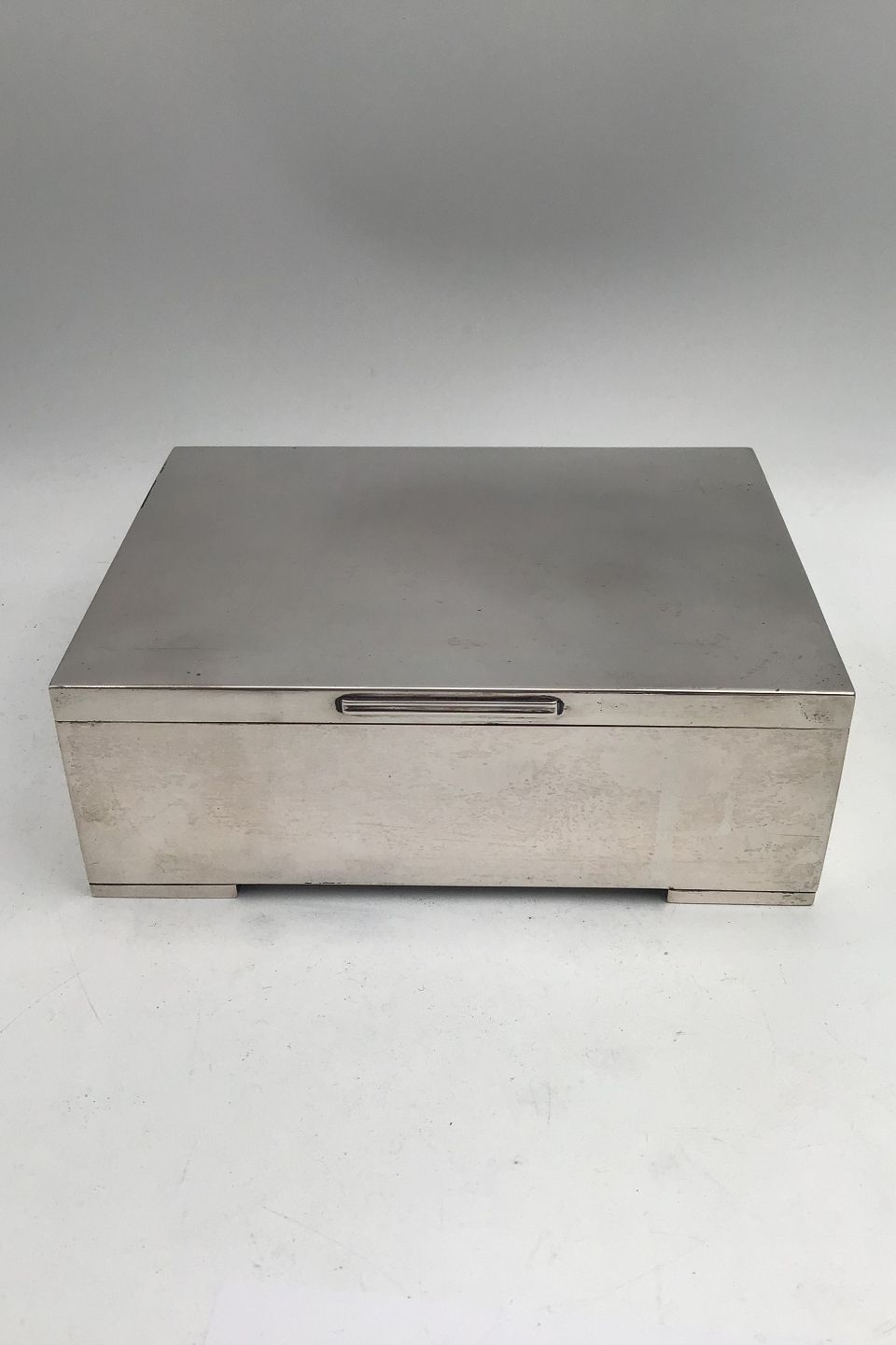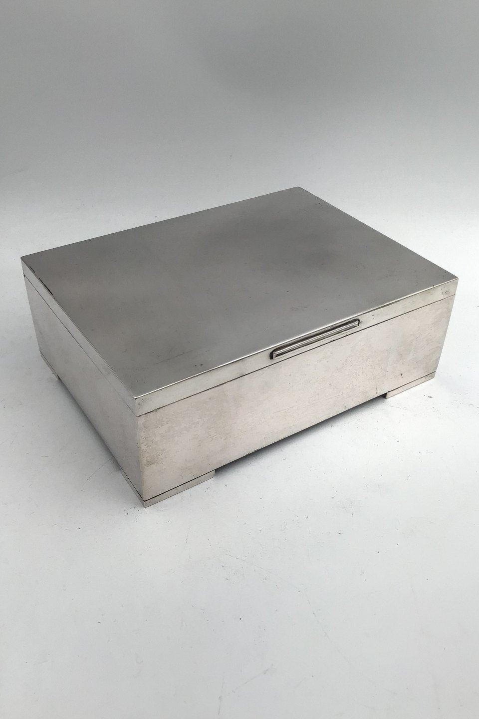Dansk Sølvskrin (1937) Måler 18.3 cm x 13.7 cm x 6.5 cm (7.20 inch x 5.39 inch x 2.55 inch) Vægt 1078 gr (38.05 oz) (Træ indlæg)