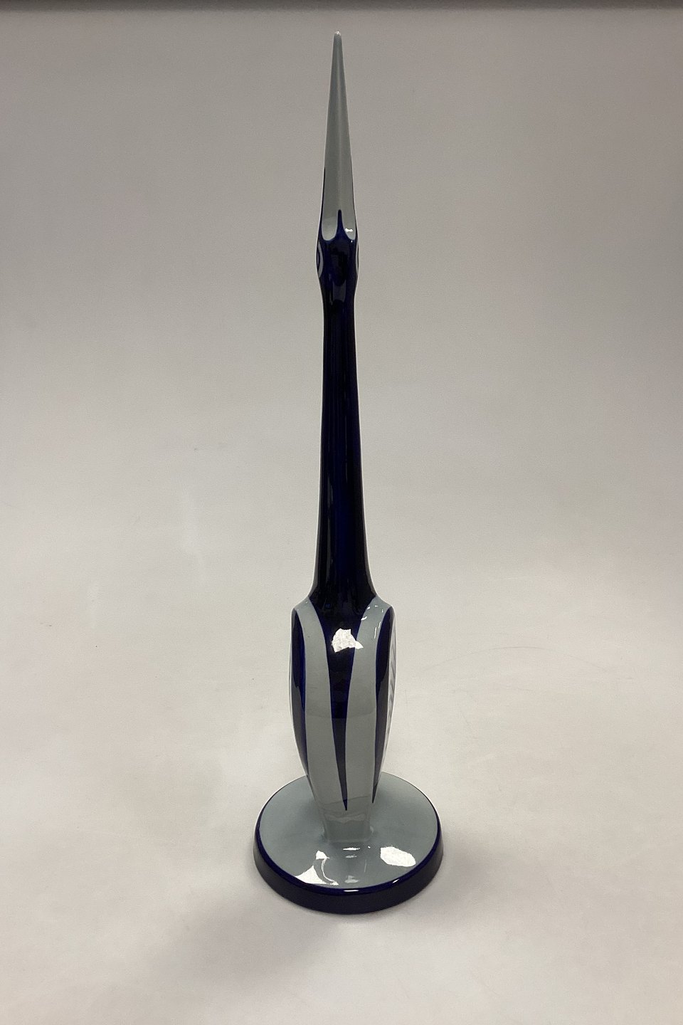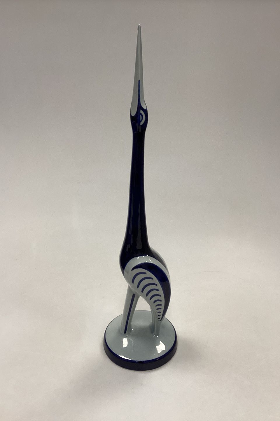 Søholm Keramik Figur - Blå/Hvid Trane. Håndmalet, formodentlig unika eksemplar. Måler 41 cm / 16.15 in.