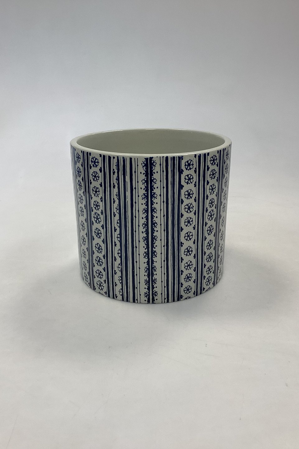 Bjørn Wiinblad Nymølle Flower Pot - Autumn No. 3024-699. Blue decoration. Measures 13 cm x 14.5 cm / 5.12 in. x 5.71 in.