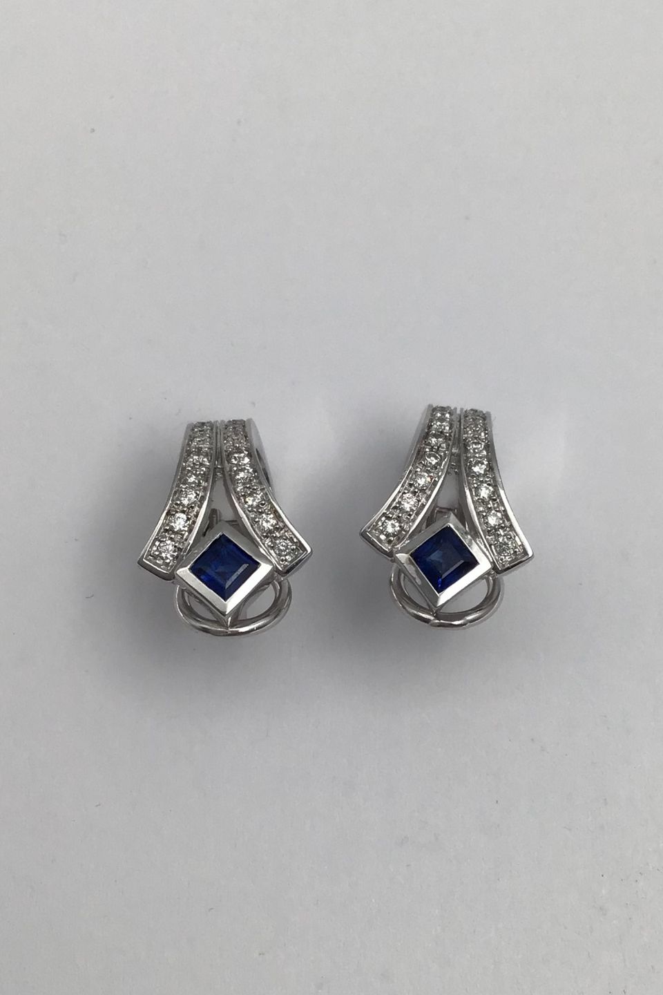 Danske 14 K Hvidguld Ørestikker m Safir & Diamanter Måler 2 cm x 1.2 cm (0.78 inch x 0.47 inch) Samlet Vægt 9.3 gr (0.33 oz)