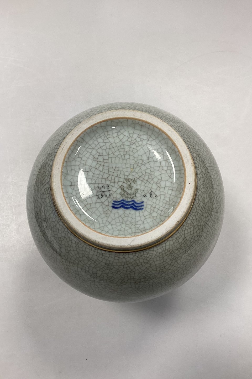 Royal Copenhagen Cracked Vase No.443/2505 in gray with gold and green decoration. 1st Quality in very fine condition.