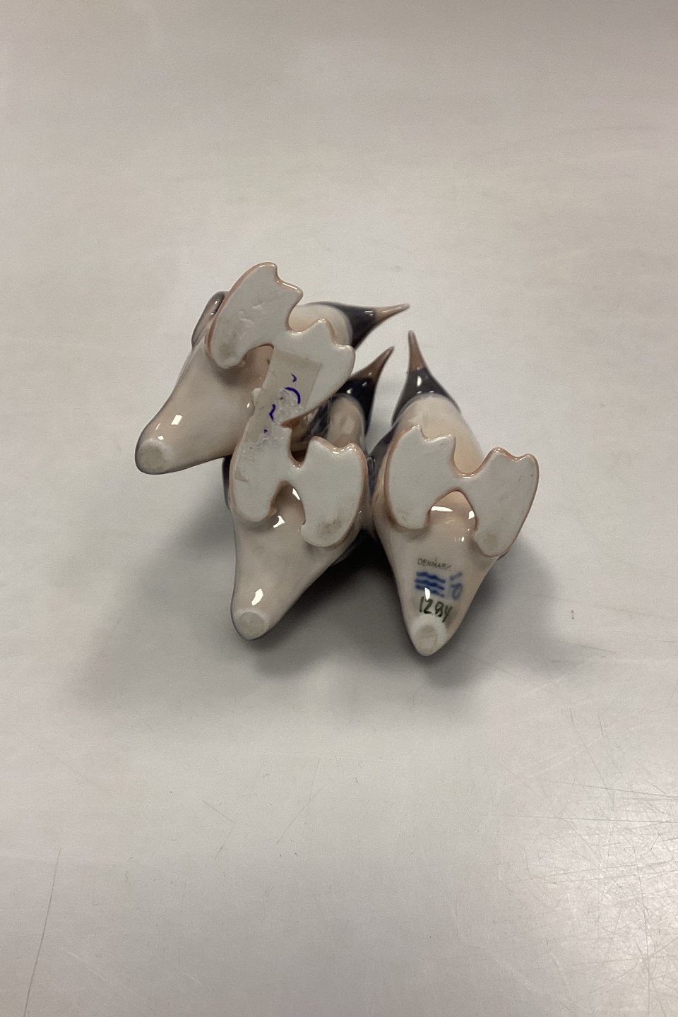 Royal Copenhagen Figur - Pingvin Trio No. 1284. Designet af Anna Trap. Måler 10 cm x 9 cm / 3,93 in. x 3,54 in.