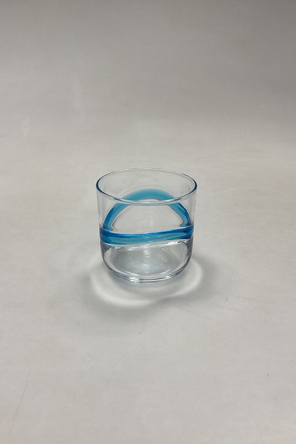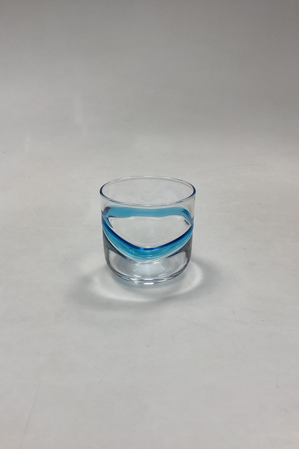 Holmegaard Blå Time Drink Glas. Måler 7 cm x 7,2 cm / 2,75 in. x 2,83 in. Designet 1971 af Christel og Christer Holmgren.