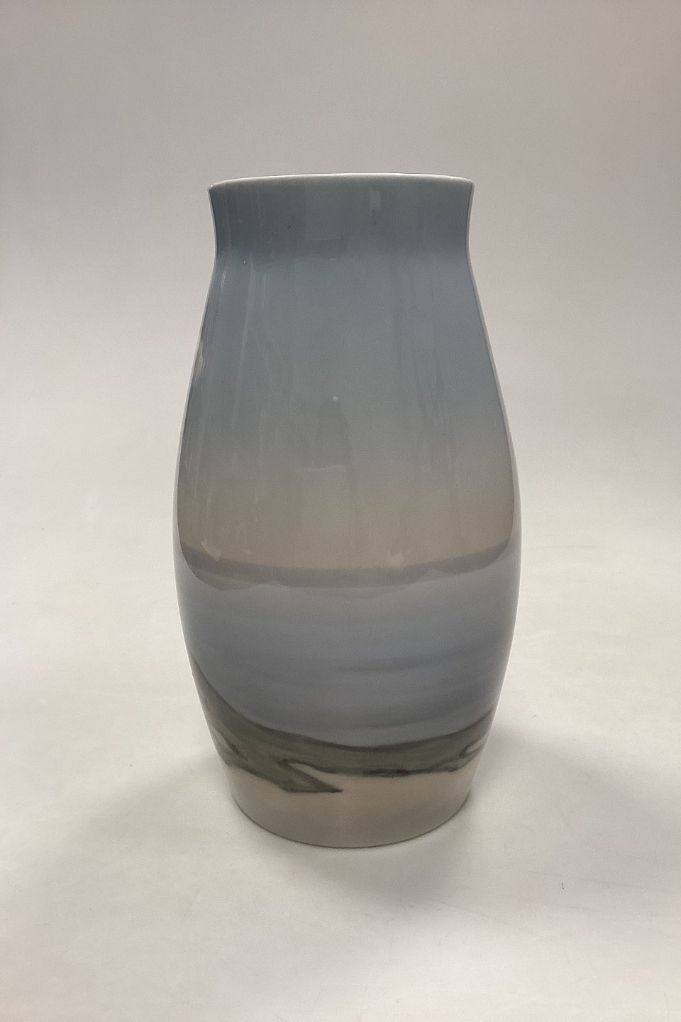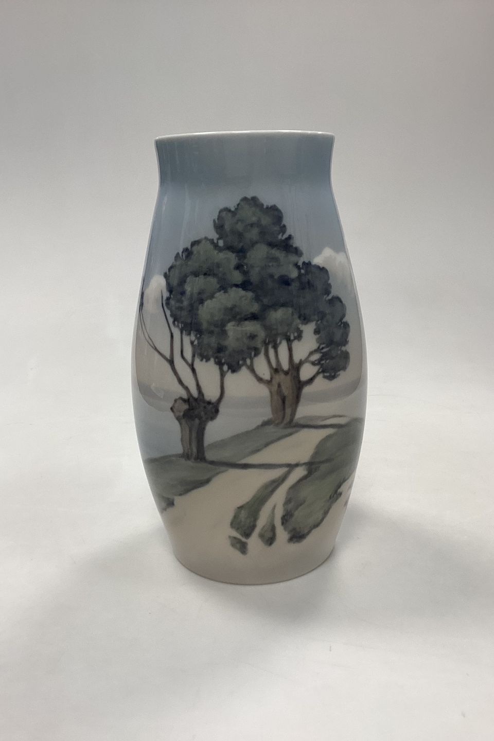Bing og Grøndahl Vase - Træer ved vejen No. 8676/247. Oval åbning. Kraftig kontur i motivet. Måler 22,5 cm / 8,85 in.