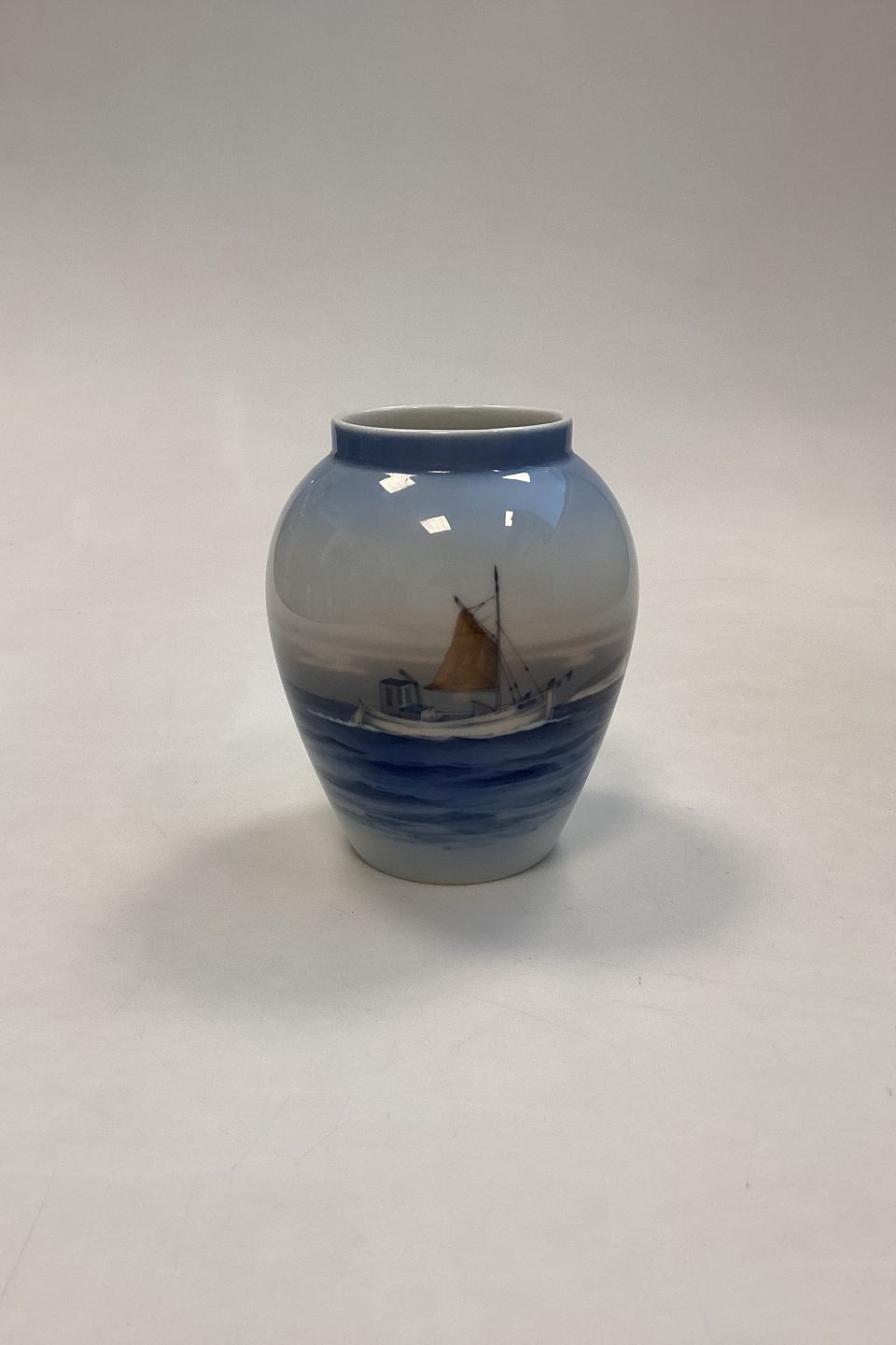 Lyngby Porcelain Vase with Fisherman Boat No. 74-2. Measures 12.5 cm / 4.92 in.
