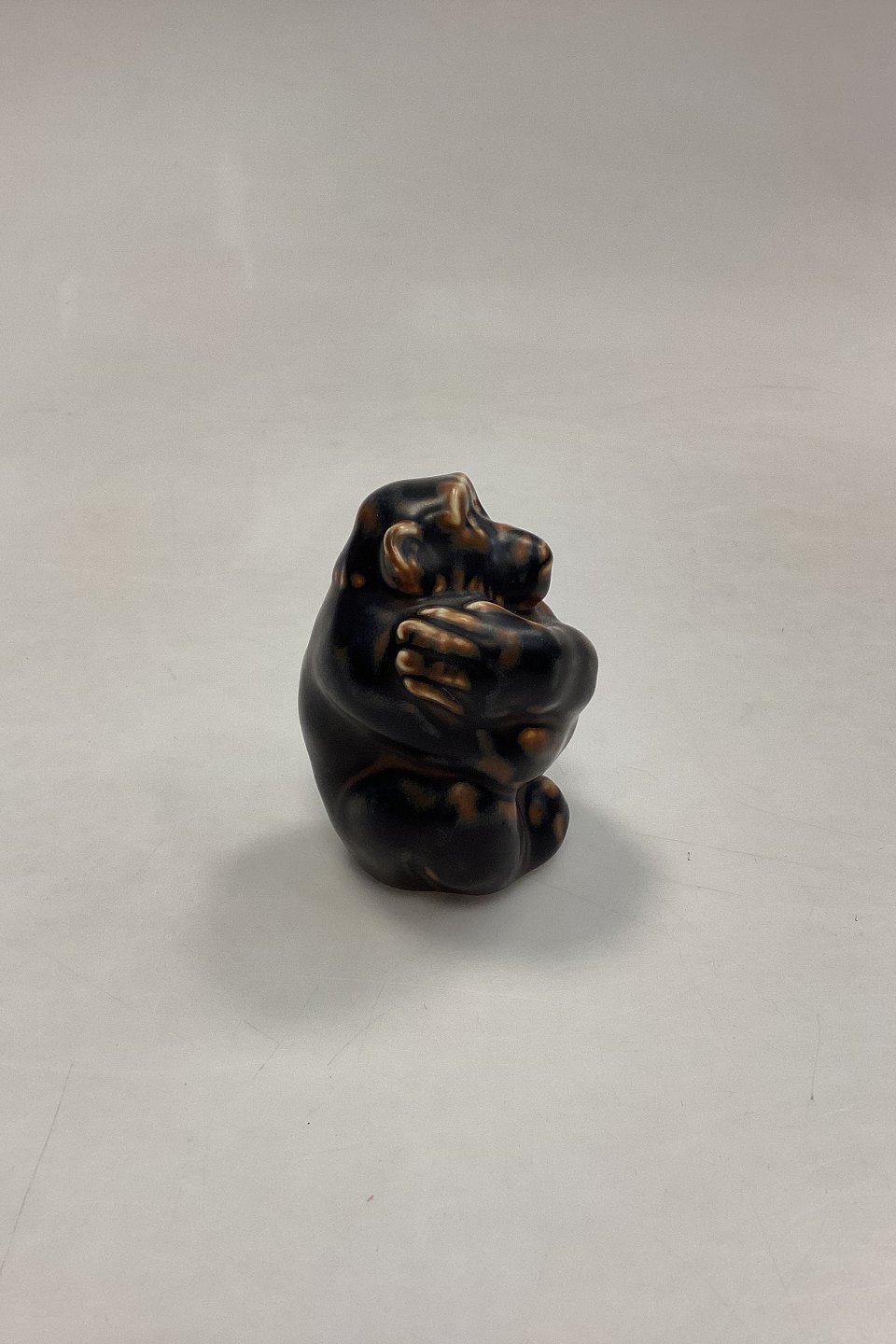 Royal Copenhagen Stentøjsfigur af Abe No. 20188. Designet af Knud Kyhn. Måler 8,5 cm / 3,34 in. 1. Sortering.