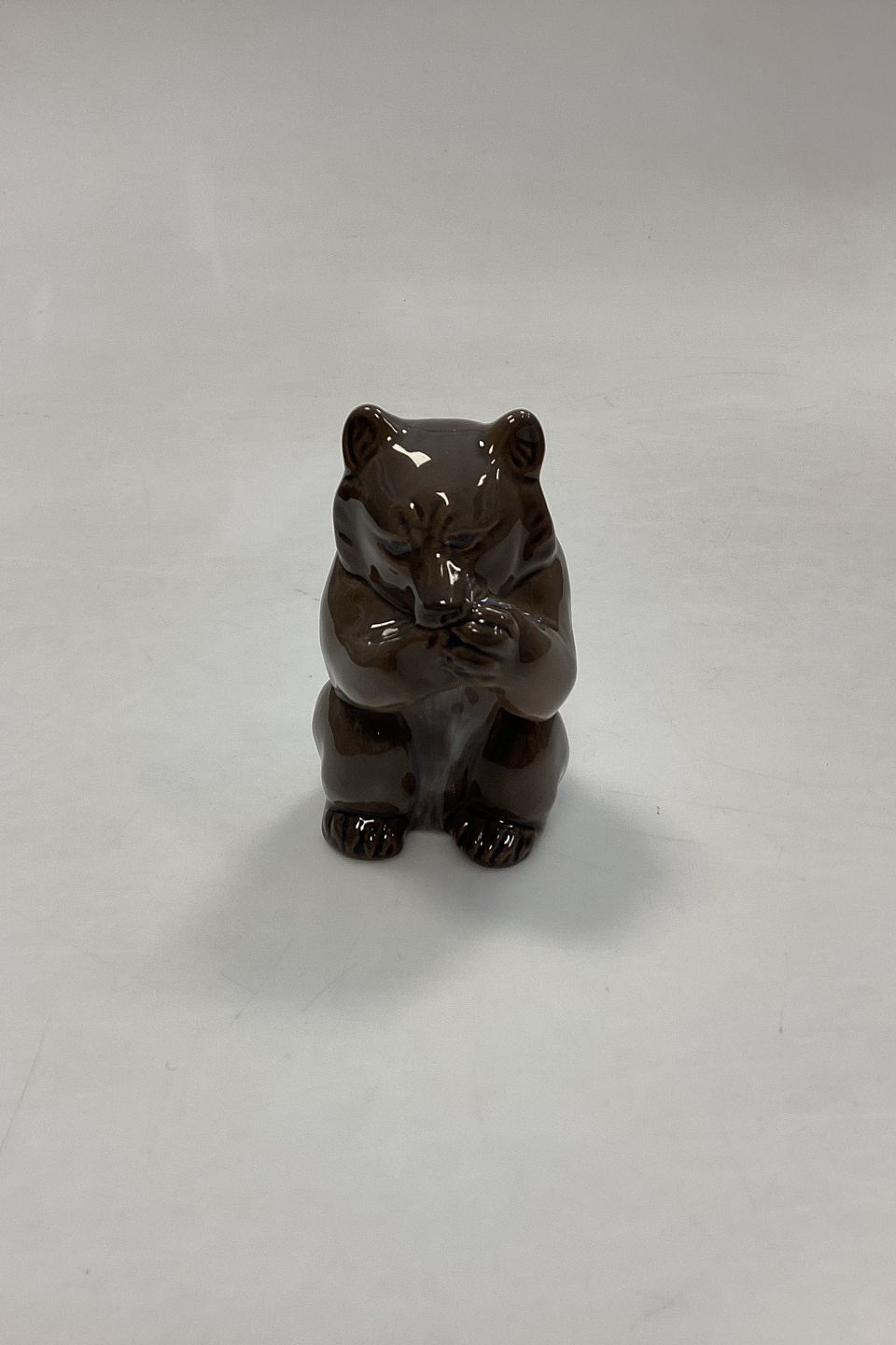 Royal Copenhagen Figur af Bjørneunge No. 3014. Designet af Knud Kyhn. Måler 9 cm / 3,54 in. Gråbrune nuancer.