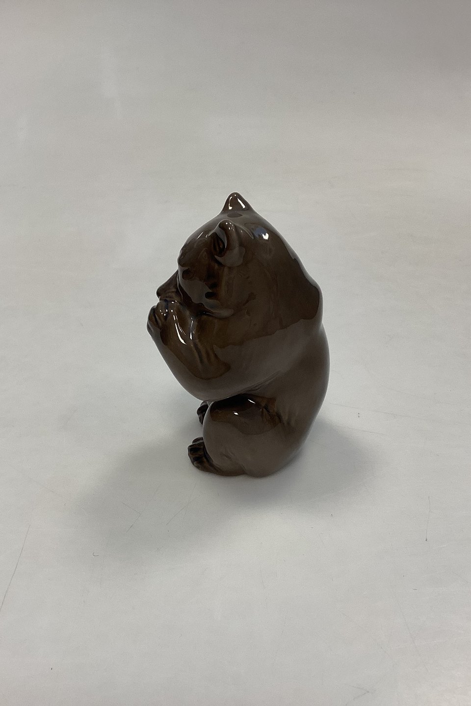 Royal Copenhagen Figurine of Bear Cub No. 3014. Designed by Knud Kyhn. Measures 9 cm / 3.54 in. Greyish brown shades.
