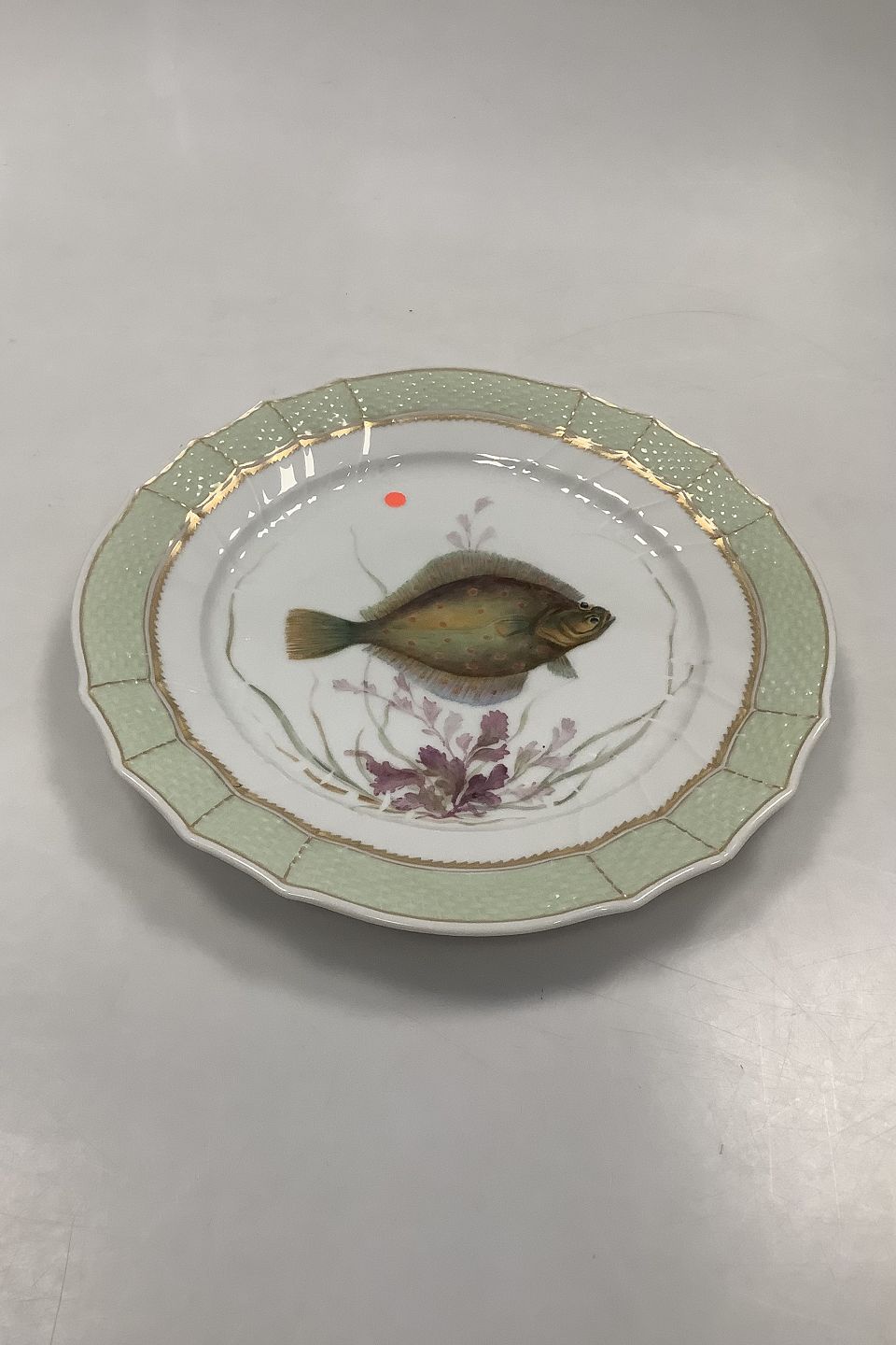 Royal Copenhagen Grøn Fisketallerken No 919/1710 med Pleuronectes plattessa