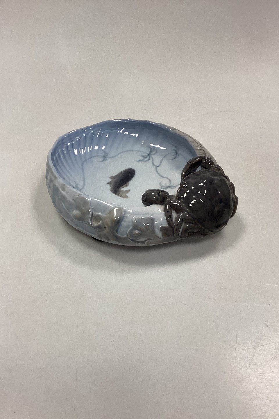 Royal Copenhagen Art Nouveau Bowl with Crab No. 2465. Measures approx. 25 cm x 20 cm (9 27/32 in. x 7 7/8 in.) 1st Quality
